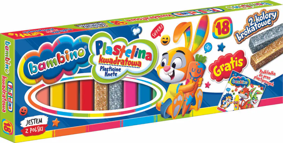 Plastelina kwadratowa BAMBINO, 18 kolorów