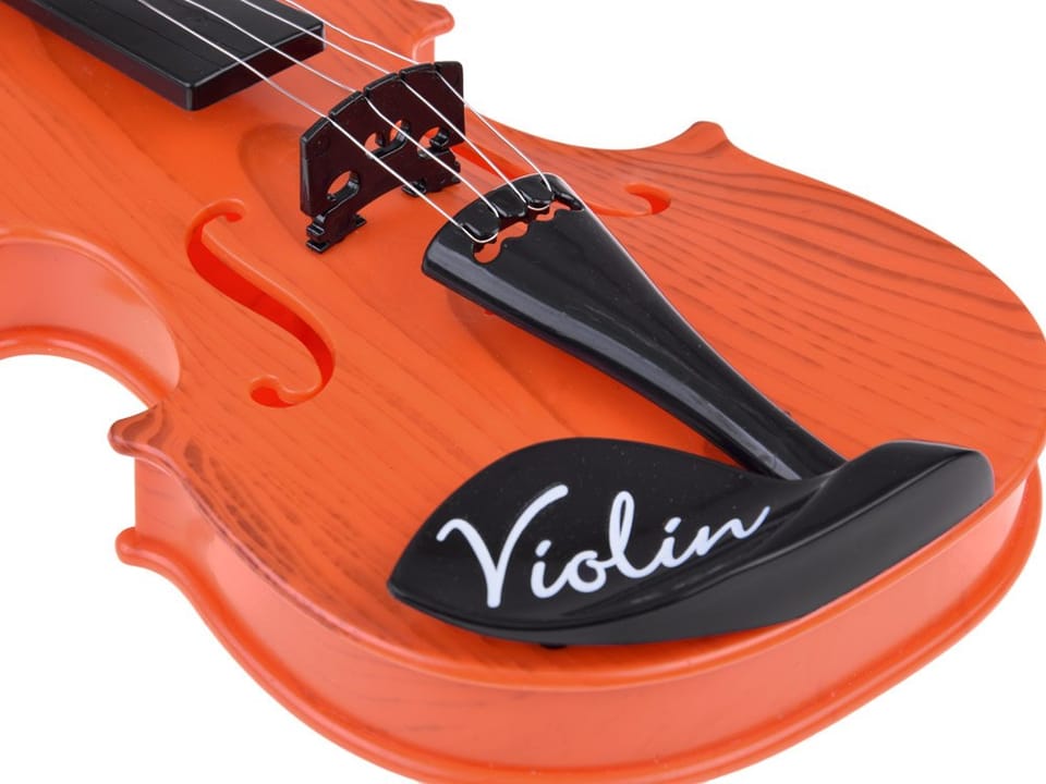 Plastikowe skrzypce ze smyczkiem wyśmienicie imitują prawdziwy instrument, posiadają niewielki gabaryt idealnie dostosowany do małych rączek dziecka. Skrzypce są plastikowe w drewno podobnym kolorze, posiadają 4 metalowe struny a smyczek wykonany jest z żyłek. Świetnie posłuży jako rekwizyt do przebrania.