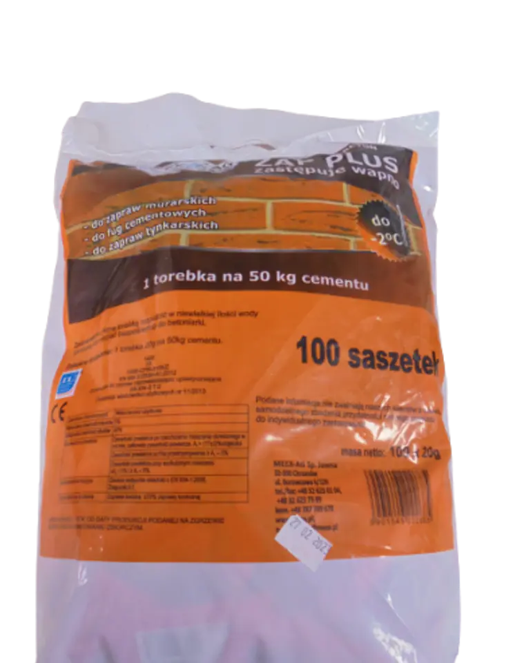 Jedna saszetka 20g ZAP PLUS przeznaczona jest na 50 kg cementu.