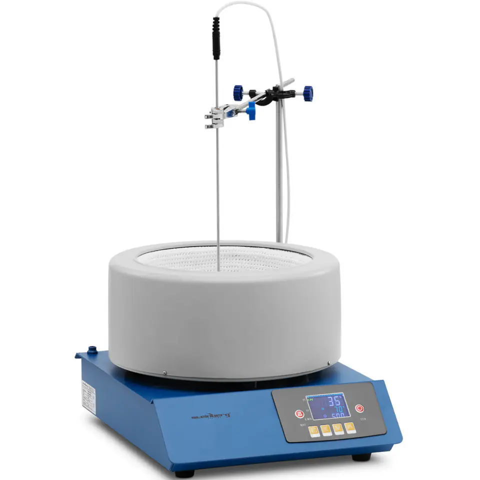 Płaszcz grzewczy z mieszadłem magnetycznym Steinberg Systems to profesjonalne urządzenie dla laboratoriów chemicznych, biologicznych, biochemicznych, a także szkół i centrów badawczych. Posiada czaszę o pojemności 5 l do jednoczesnego mieszania oraz podgrzewania różnych płynów. Dokładne ustawianie temperatury (do 300°C) i prędkości (do 1800 obr./min) za pomocą wyświetlacza LED. Sprzęt wykonano z trwałego aluminiowego odlewu. Ponadto zastosowano izolację cieplną, która zapobiega utracie wysokiej temperatury, a jednocześnie chroni podzespoły przed przegrzaniem.