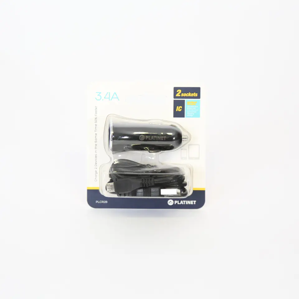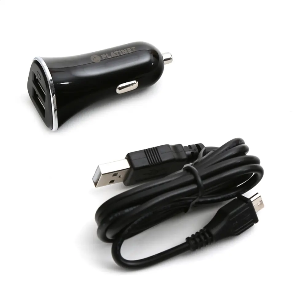 PLATINET CAR CHARGER ŁADOWARKA SAMOCHODOWA 2xUSB 3,4A + MICRO CABLE KABEL 1m BLACK [43719]