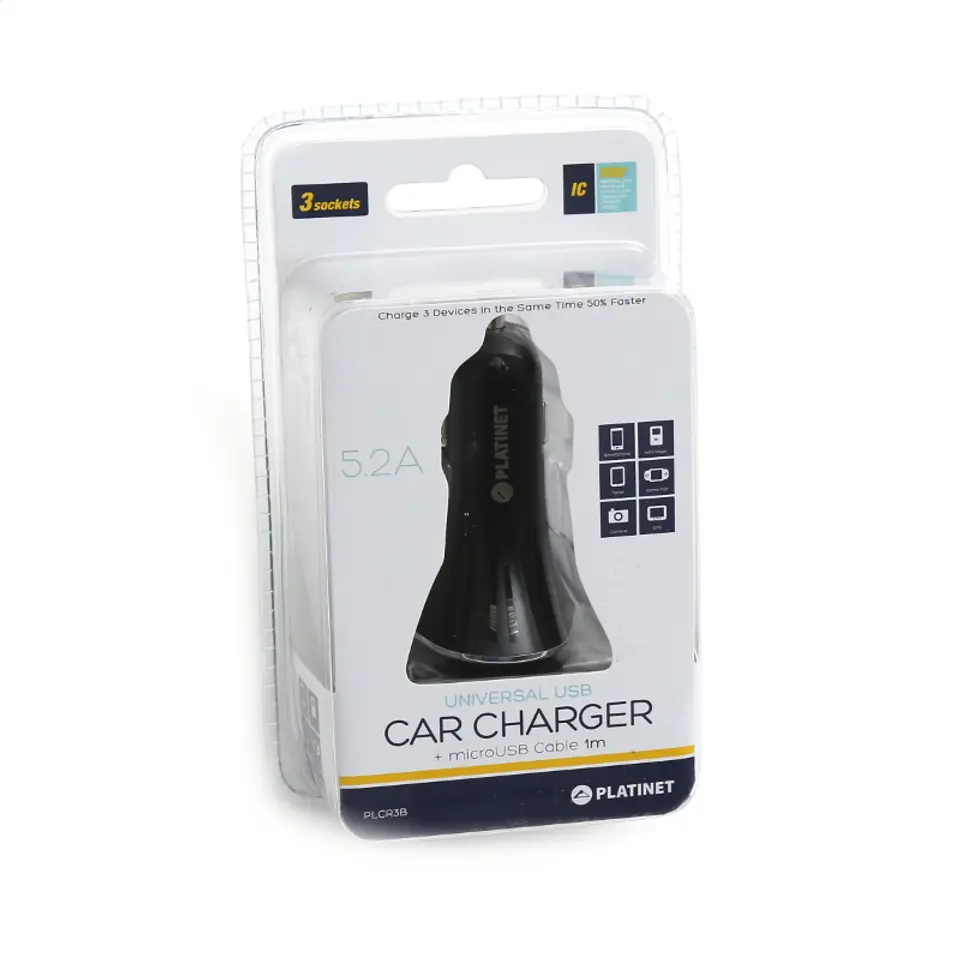 PLATINET CAR CHARGER ŁADOWARKA SAMOCHODOWA 3xUSB 5,4A 27W + MICRO USB CABLE KABEL 1M BLACK [43721]