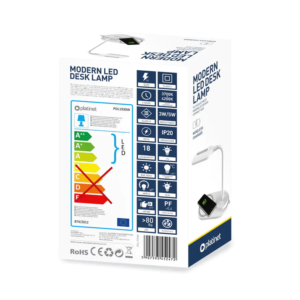 PLATINET DESK LAMP LAMPKA BIURKOWA LED LAMPKA BIURKOWA LED WIRELESS CHARGER 10W WHITE [ 45247 ]
