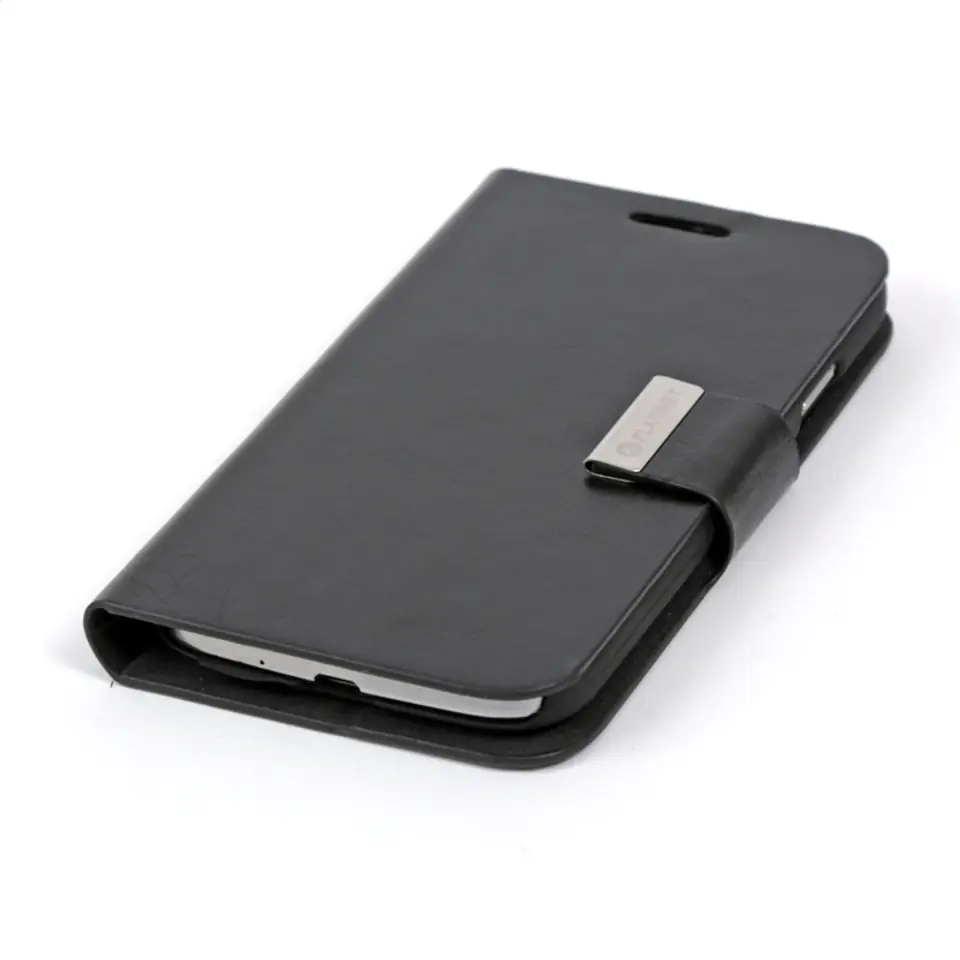 Eleganckie etui na telefon Samsung Galaxy S4 Doskonałe dopasowanie i zabezpieczenie telefonu. Zamykane na zewnętrzny pasek z magnesem. Posiada funkcję podstawki, wygodne rozwiązanie przy codziennym użytkowaniu Cechy produktu: Przeznaczenie: Samsung Galaxy S4 Kolor: czarny Materiał: PU