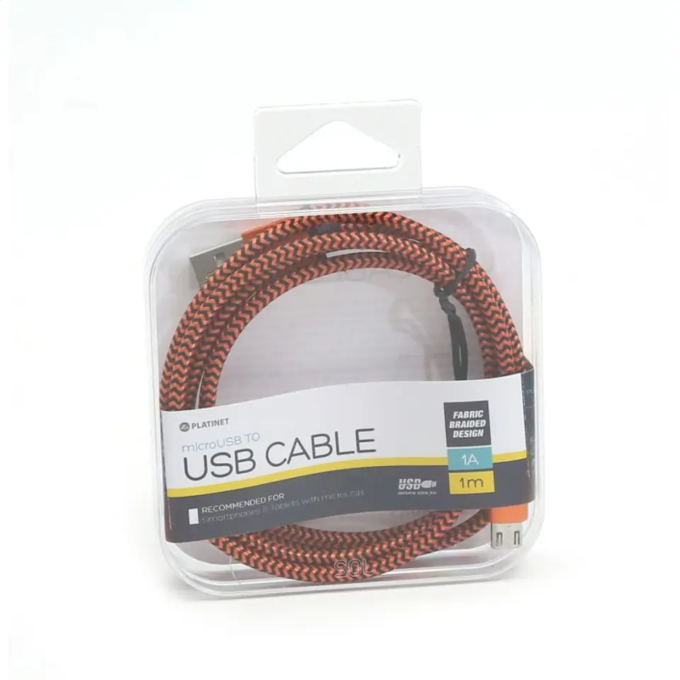 PLATINET HERMES MICRO USB TO USB FABRIC BRAIDED CABLE KABEL 2A 1M ORANGE [43305]