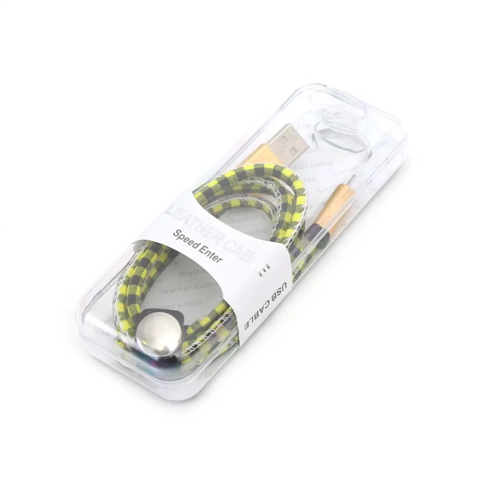 PLATINET MAMBA MICRO USB TO USB LEATHER CHECKED CABLE KABEL 2,4A 1M YELLOW [43322]