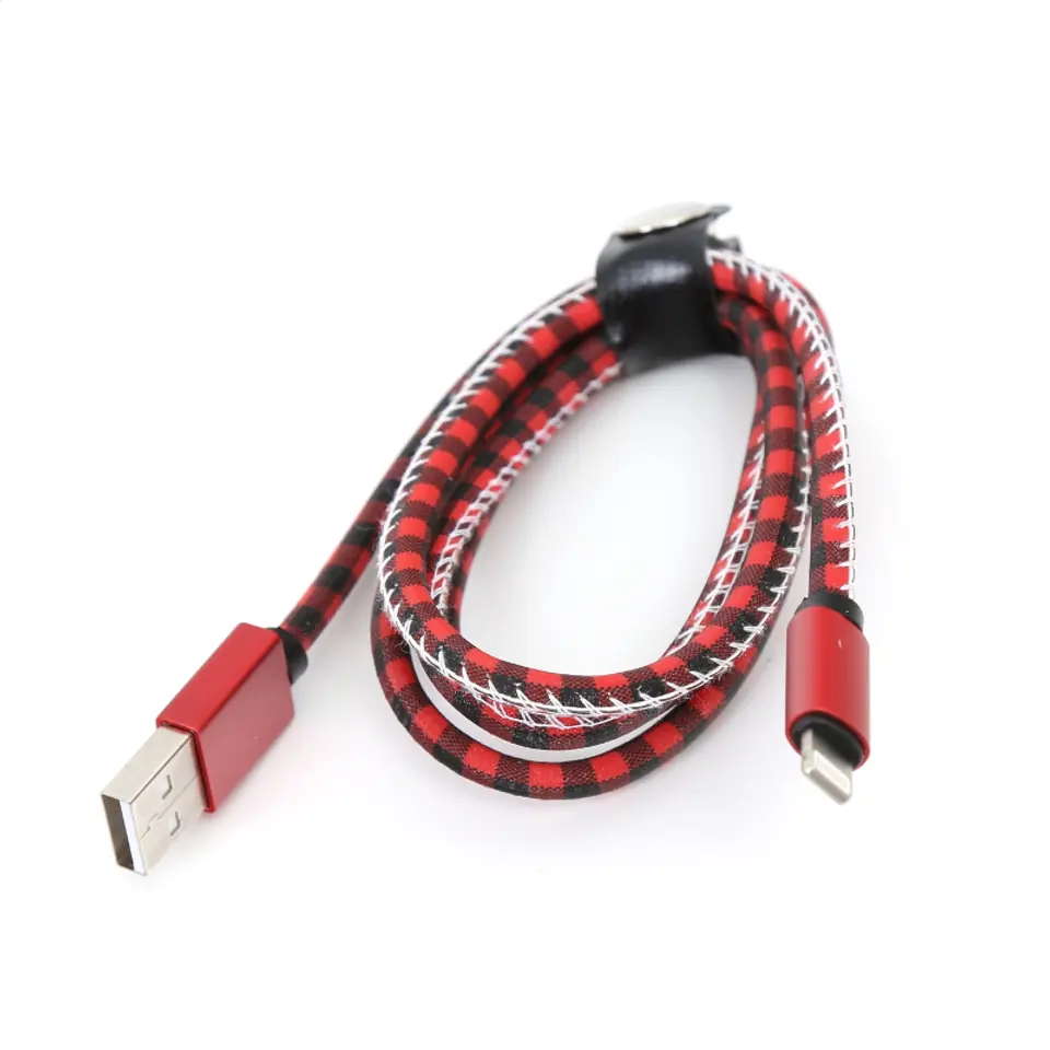 PLATINET TAJPAN LIGHTNING TO USB LEATHER CHECKED CABLE KABEL 1M RED [43592]