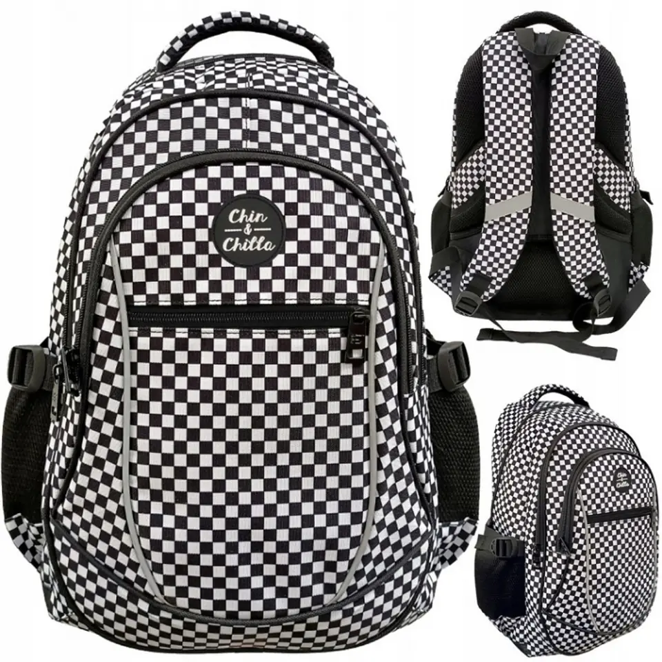 Plecak szkolny z kolekcji Chin&Chilla posiada 3 komory, zewnętrzną kieszeń na drobiazgi zapinane na zamek.