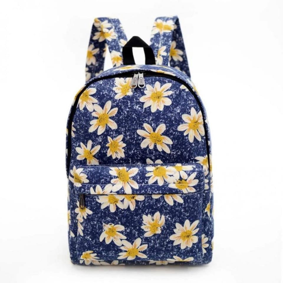 Stylowy plecak z nadrukiem w stokrotki Bardzo wygodny i funkcjonalny. Pomieści wszystkie niezbędne rzeczy.Posiada dużą główną komorę oraz kieszonki wewnętrzną i zewnętrzną. Komora zasuwana na zamek, bardzo pojemna. Regulowane szelki zapewniające duży komfort noszenia, dodatkowo uchwyt do noszenia w ręku.Najmodniejszy dodatek, który jest nie tylko oryginalny, ale również praktyczny.Idealny do szkoły, na wycieczkę, w podróż czy na spacer, jak również jako uzupełnienie modnej stylizacji.Wykonanie:Plecak wykonany jest z wysokiej jakości płótna.Wymiary:Wymiary: 43 cm x 30cm x 16 cmPojemność: 20 - 35 litrów