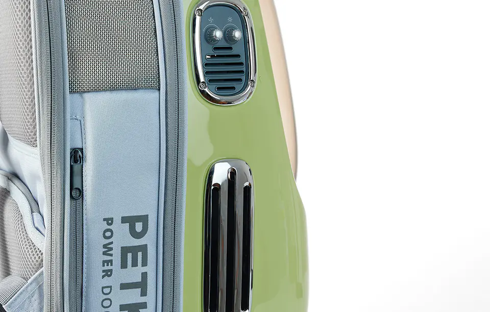 Nie musisz się obawiać, że Twojemu pupilowi zabraknie świeżego powietrza. Plecak został wyposażony w wiele otworów, wentylator i zaawansowany system wentylacji Coanda Effect. Po około 20 sekundach Twój pupil będzie mógł oddychać świeżym powietrzem. Ma także precyzyjny czujnik temperatury, który umożliwia jej automatyczną kontrolę. Dzięki temu zwierzakowi nie będzie duszno! Istnieje też możliwość ręcznego dostosowania prędkości przepływu powietrza. Uwaga: aby korzystać z systemu wentylacji, niezbędny jest dodatkowy powerbank (brak w zestawie).