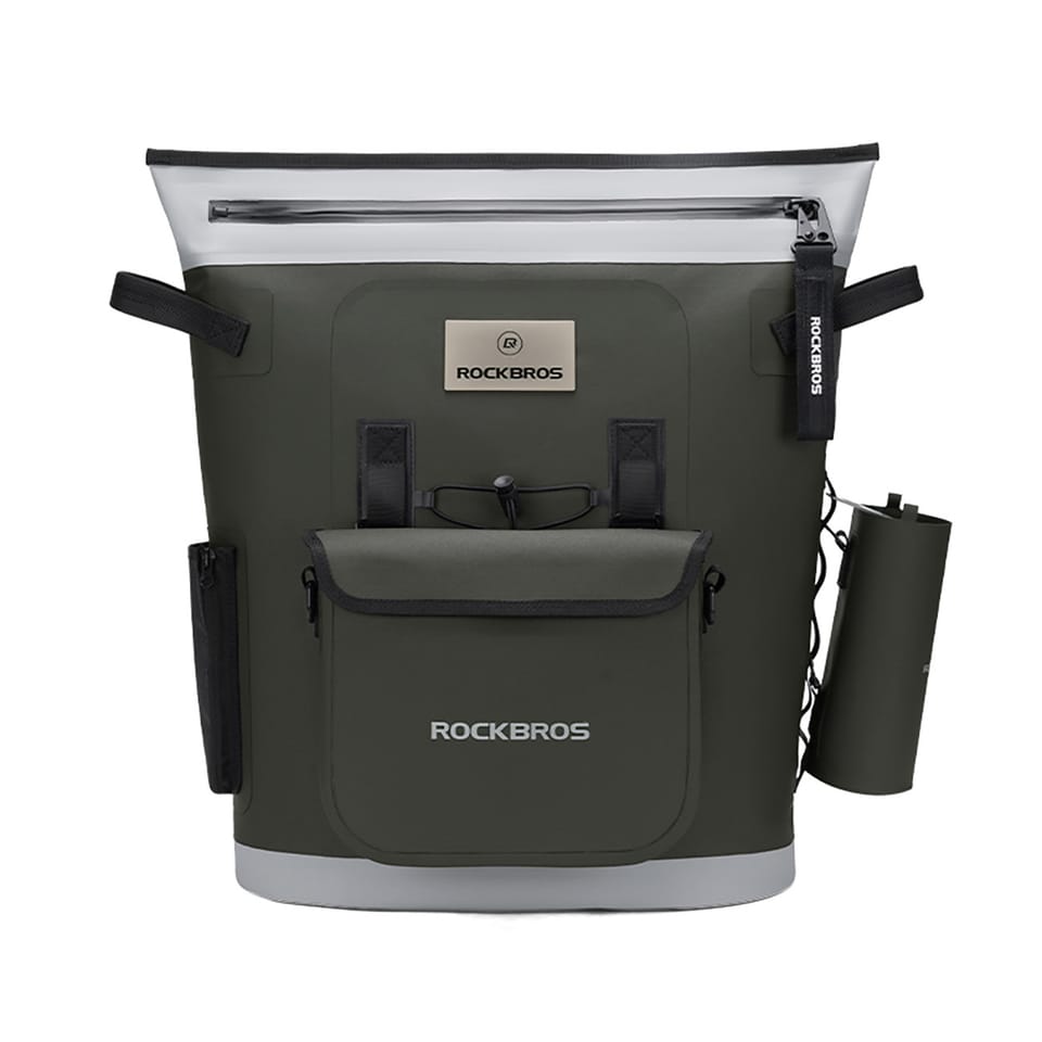 Kod producenta: 5907769374531 Plecak termiczny Rockbros z izolacją to idealne rozwiązanie dla miłośników aktywności na świeżym powietrzu, którzy cenią funkcjonalność, wygodę i stylowy wygląd. Dzięki pojemności 18 litrów (w tym 2,5 l z dodatkowej zawieszanej torby), zapewnia wystarczająco dużo miejsca na napoje, jedzenie i inne niezbędne akcesoria. Wykonany z wytrzymałego materiału 840DTPU plecak łączy nowoczesny design z wysoką odpornością na zużycie. Skuteczna izolacja fizyczna umożliwia utrzymanie chłodnej temperatury nawet przez 68 godzin, przy zastosowaniu kostek lodu lub wkładów mrożących. Ergonomiczna konstrukcja zapewnia wygodne noszenie, a kompaktowy rozmiar pozwala łatwo zmieścić go w aucie czy przypiąć do roweru. To nie tylko plecak – to mobilna lodówka outdoorowa, która doskonale sprawdzi się podczas wypraw rowerowych, pikników i rodzinnych biwaków.Cechy produktu:
