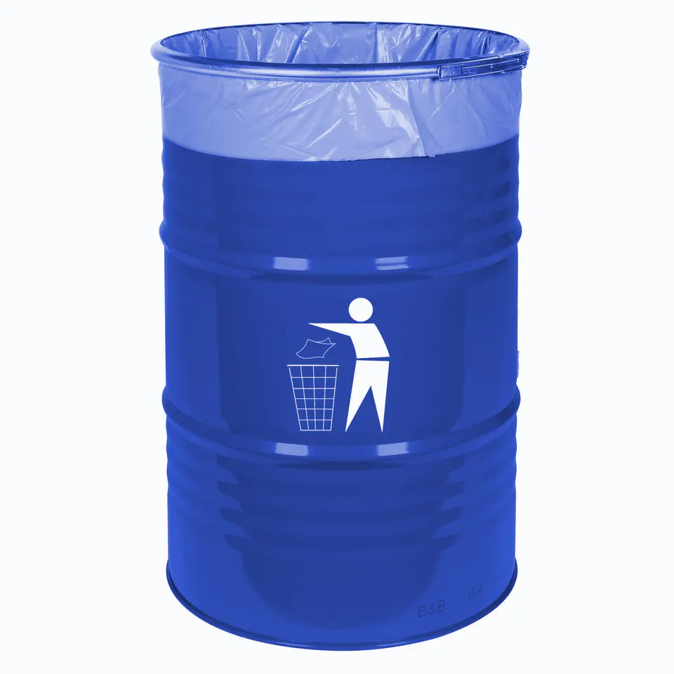 ID produktu: 1015063Niezwykle trwały i odporny plenerowy kubeł na śmieci i odpadki wykonany z beczki stalowej o pojemności 200 litrów. Doskonale sprawdzi się w ośrodkach wypoczynkowych, podczas imprez masowych i festynów czyli wszędzie tam gdzie wymaga się dużej pojemności, odporności na uszkodzenia i prostoty użytkowania. Pojemnik posiada wytrzymałą, stalową pokrywę, która umożliwia szczelne zamknięcie i wykorzystanie kubła w celu przechowywania lub transportu innych rzeczy.Cechy i zalety kubła z beczki:- idealny do ośrodków wypoczynkowych i na imprezy masowe- praktycznie niezniszczalny pojemnik na odpadki - na wiele lat użytkowania- bardzo duża pojemność 200 litrów- duży otwór wlotowy ułatwia gromadzenie odpadków- niezwykle proste i szybkie zakładanie worka dzięki otwieranej obręczy- pojemnik odporny na warunki atmosferyczne- bardzo stabilny i odporny na przewrócenie przez wiatr (można dodatkowo obciążyć kamieniami)- skuteczna ochrona przed działaniem zwierząt - stalowa konstrukcja zabezpiecza ochronę podczas podpalenia- w przypadku pożaru płomienie pozostają w obrębie pojemnika- po zamknięciu pokrywą może służyć jako szczelny i odporny pojemnik do przechowywaniaParametry:- pojemność: 212 dm3- grubość blachy (wieko-pobocznica-dno): 0,6 - 0,8 - 0,8 mm- lakier w kolorze niebieskim / granatowym- waga: 22 kg- średnica wewnętrzna: 571,5 mm- średnica zewnętrzna max.: 585mm- wysokość 880 +/- 3 mm- do pojemnika pasują grube i wytrzymałe worki 240L (czarne - 1004887, niebieskie - 1004885, zielone - 1004886, żółte - 1004888, czerwone - 1007602, przeźroczyste - 1008752)W zestawie:- kubeł na śmieci ze stalowej beczki 200L- obręcz do zamocowania worka i pokrywy- szczelna pokrywa ze stali- naklejkaUWAGAOferujemy beczki warsztatowe, nowe nie używane, jednak z uwagi na swoją specyfikę mogą posiadać lekkie uszkodzenia podczas transportu. Zdarzają się lekkie otarcia, wgniecenia lub zarysowania. Jeżeli poszukujecie Państwo beczek w stanie idealnym prosimy o odbiór osobisty lub zamówienie u innego sprzedawcy.
