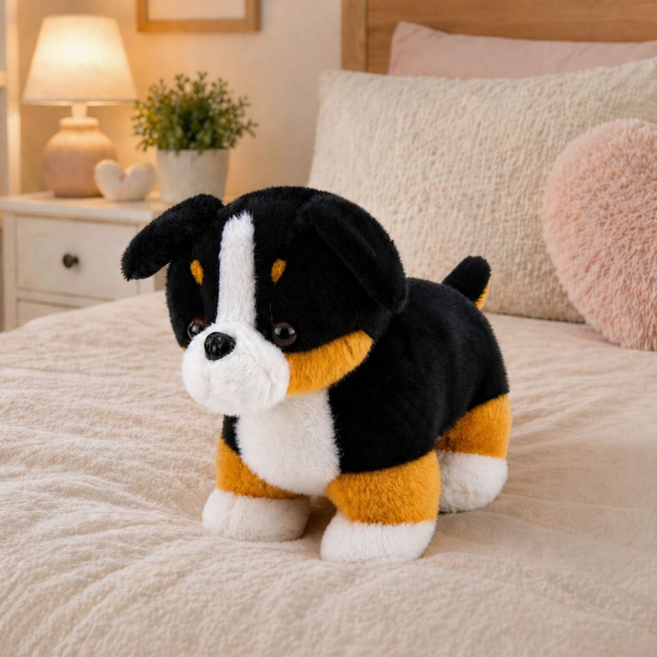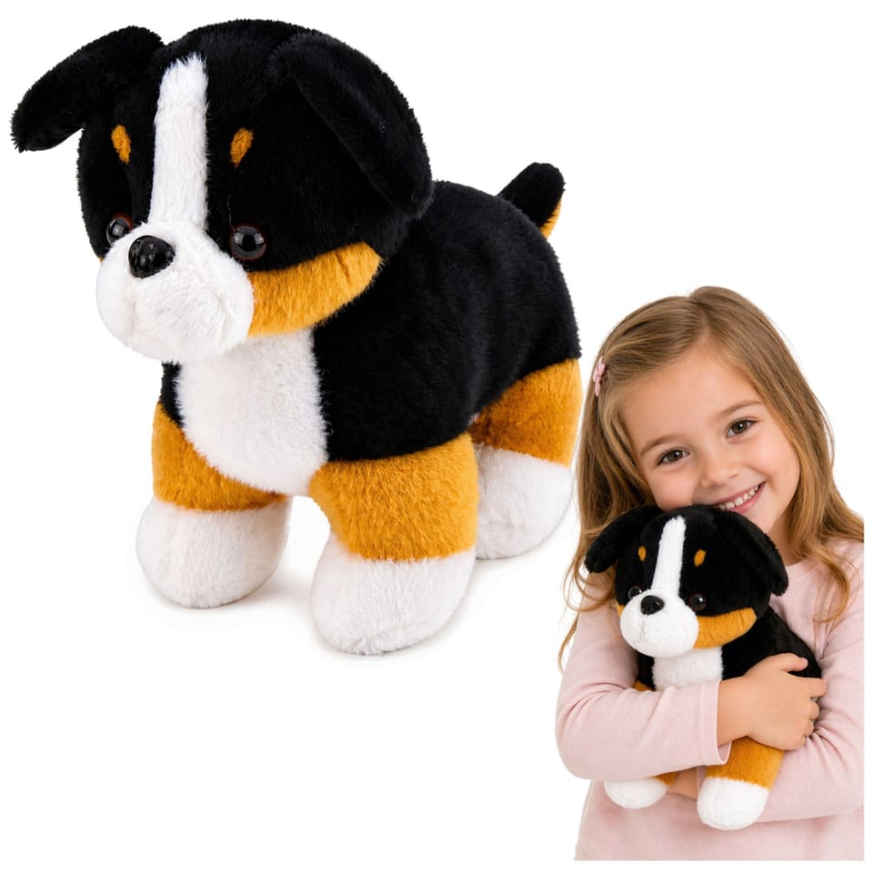 Uroczy pluszowy pies rasy berneński pies pasterski to idealna przytulanka dla dzieci, która zachwyca realistycznym wyglądem oraz miękkością. Starannie odwzorowane detale, charakterystyczne umaszczenie oraz przyjazny wyraz sprawiają, że maskotka wygląda jak prawdziwy piesek, co dodatkowo pobudza wyobraźnię dziecka i zachęca do zabawy.