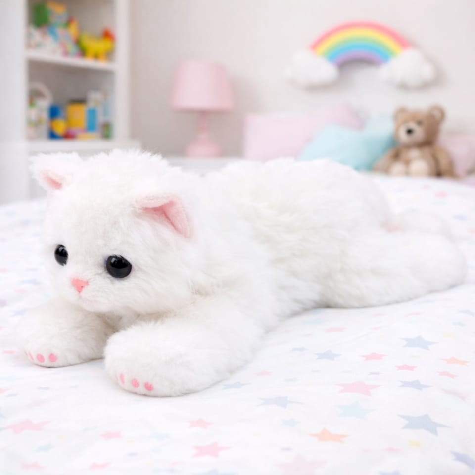 Uroczy pluszowy kotek w białym kolorze to miękka i przyjemna w dotyku maskotka, która szybko stanie się ulubionym towarzyszem zabaw dziecka. Dzięki realistycznemu wyglądowi oraz starannie wykonanym detalom pluszak przypomina prawdziwego kotka i zachęca do przytulania oraz wspólnej zabawy. Delikatne futerko, miękkie łapki oraz sympatyczny pyszczek sprawiają, że maskotka prezentuje się bardzo naturalnie i przyciąga uwagę najmłodszych.