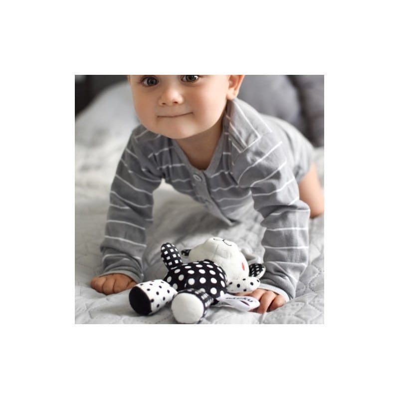 Pluszowa zawieszka Miś bez wątpienia przykuje uwagę Twojego dziecka. Maskotka wyposażona jest w uniwersalny, łatwy do zaczepienia na wszelkich powierzchniach plastikowy uchwyt-haczyk, dzięki czemu można ją zamocować w dowolnym miejscu w domu oraz w podróży. Czarno-białe kolory stymulują zmysł wzroku u niemowlaka, który jeszcze nie rozróżnia barw. Produkt wykonany z delikatnego materiału, który powoduje, że dziecko nie chce się z nimi rozstać. Rozwija koordynacje wzrokowo-słuchową i motoryczną malucha. Wymiary: - z zawieszką 22 cm - bez zawieszki 17 cm A0470
