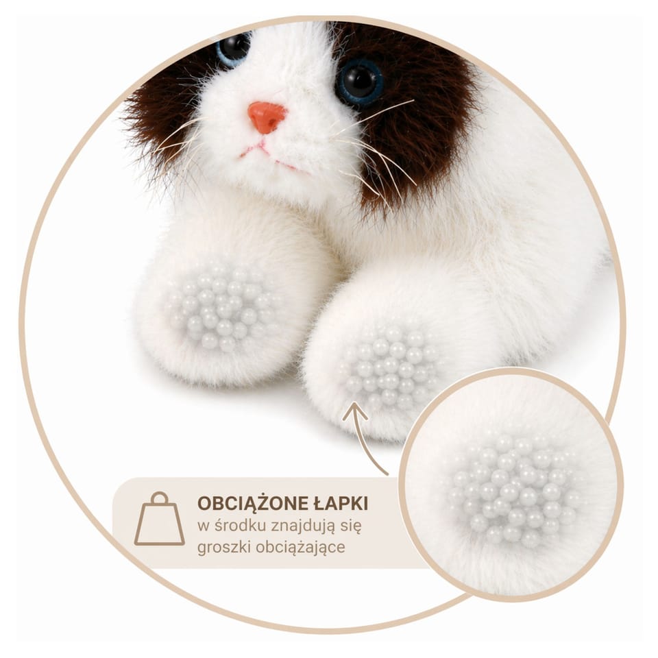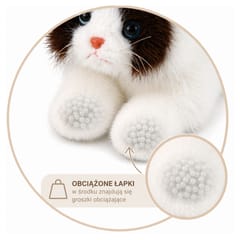 Dodatkowym atutem są kuleczki obciążające umieszczone w łapkach, które sprawiają, że maskotka stabilnie leży i jeszcze lepiej dopasowuje się do pozycji podczas przytulania. Dzięki temu pluszak daje bardziej realistyczne odczucia i zwiększa wygodę użytkowania.