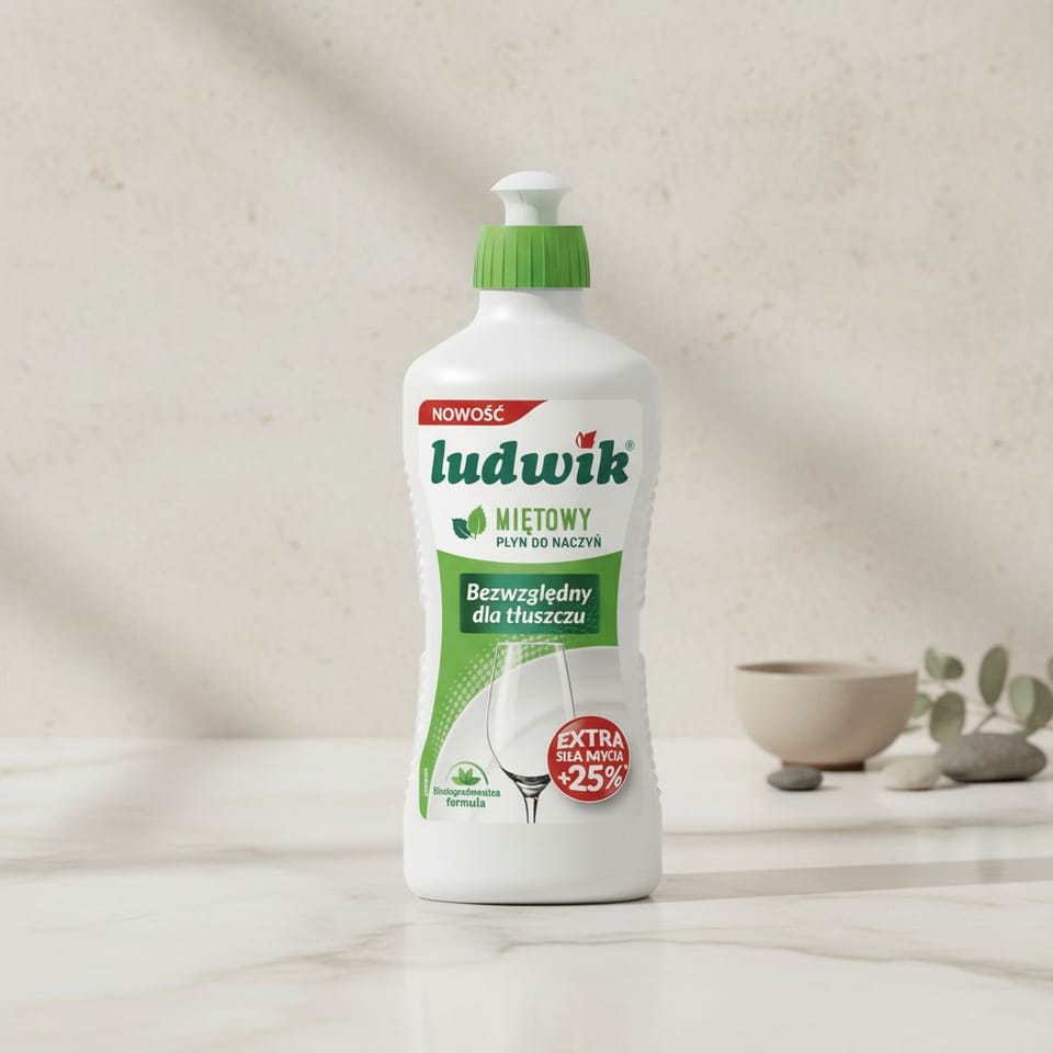 - Płyn do mycia naczyń Ludwik jest bezwzględny dla tłuszczu, pozostawia czyste i lśniące naczynia bez zacieków.