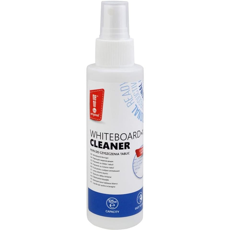 * płyn do tablic MEMOBE * do regularnego czyszczenia tablic suchościeralnych z powierzchnią lakierowaną lub ceramiczną * usuwa pozostałości tuszu bez pozostawiania smug * konserwuje i zabezpiecza powierzchnię tablic poprawiając ich właściwości suchościeralne * produkt biodegradowalny * przyjazny dla środowiska * praktyczny rozpylacz ułatwia aplikację * na czyszczonej płynem powierzchni tablicy pozostaje warstwa antystatyczna * skład: Propan-2-ol, 2-Butoksyetanol, Orange Oil - skład zgodnie z rozporzadzeniem o detergentach 648/2004/WE: woda, kompozycja zapachowa (D-limonen) * pojemność 125 ml * jednostka sprzedaży 1 sztuka * marka MemoBe została założona w 1993 roku i dzięki intensywnemu rozwojowi zajmuje kluczowe miejsce wśród producentów z branży artykułów biurowych i szkolnych w Polsce - każdy produkt MemoBe to gwarancja wysokiego komfortu pracy podczas codziennego użytkowania - w produkcji wykorzystywane są tylko materiały wysokiej jakości - tablice wiszące i wolno stojące posiadają Certyfikat Zgodności (deklaracja zgodności ? dokument wystawiany przez producenta wyrobu albo jego upoważnionego przedstawiciela, stanowiący wiążące prawnie przyrzeczenie stwierdzające zgodność wyrobu z wymaganiami zasadniczymi właściwych dyrektyw Unii Europejskiej - deklaracja zgodności jest to potwierdzenie producenta, że jego wyrób jest bezpieczny) i spełniają wymagania określone w normie PN-EN 14434:2010 (w dokumencie określono wymagania ergonomiczne, techniczne i bezpieczeństwa dla tablic do pisania zawieszanych na ścianie i wolno stojących, używanych w pomieszczeniach do nauczania i szkolenia praktycznego, np. w klasach, amfiteatralnych salach szkolnych, uniwersyteckich itp. - celem jest zapobieganie poważnym urazom podczas prawidłowego użytkowania oraz ochrona przed skutkami nieprawidłowego użytkowania, które można przewidzieć z dużym prawdopodobieństwem - norma dotyczy wyrobów po ich zainstalowaniu)