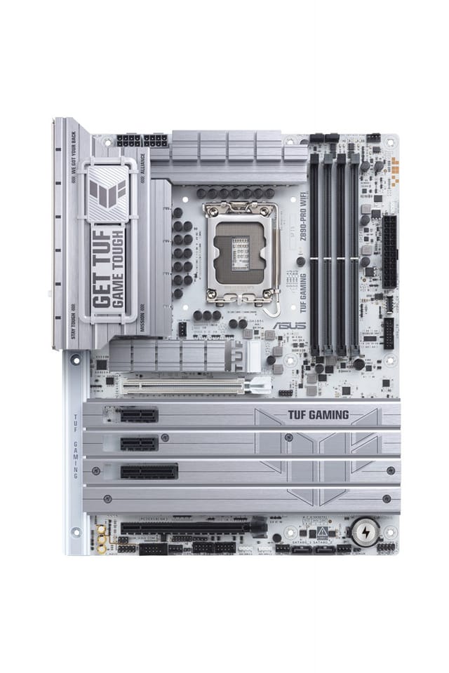 TUF GAMING Z890-PRO WIFIASUS TUF GAMING Z890-PRO WIFI wykorzystuje wszystkie niezbędne elementy najnowszych procesorów Intel Core Ultra (seria 2) i łączy je z funkcjami gotowymi do gry i sprawdzoną wytrzymałością. Zaprojektowana z komponentów klasy wojskowej, ulepszonym rozwiązaniem zasilania i kompleksowym systemem chłodzenia, ta płyta główna przekracza oczekiwania dzięki solidnej i stabilnej wydajności podczas maratonów grania. Płyty główne TUF GAMING przechodzą również rygorystyczne testy wytrzymałościowe, aby upewnić się, że poradzą sobie w warunkach, w których inne mogą zawieść. Ta platforma zapewnia moc i łączność, których wymagają zaawansowane aplikacje komputerowe AI.