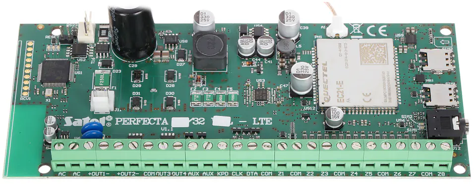 W modelu PERFECTA 32 LTE zastosowano telefon komórkowy, obsługujący transmisję danych w technologii LTE*. Umożliwia on współpracę z aplikacją mobilną z obsługą wiadomości PUSH, zdalną konfigurację systemu z użyciem programu PERFECTA Soft, monitoring zdarzeń (np. do stacji monitorującej agencji ochrony), powiadamianie głosowe, sterowanie przez SMS oraz weryfikację audio (nasłuch dźwięków z chronionego obiektu). Obsługuje dwie karty nano-SIM, co zapewnia ciągłość komunikacji: przy braku łączności z siecią pierwszego operatora, automatycznie wybierana jest druga karta.