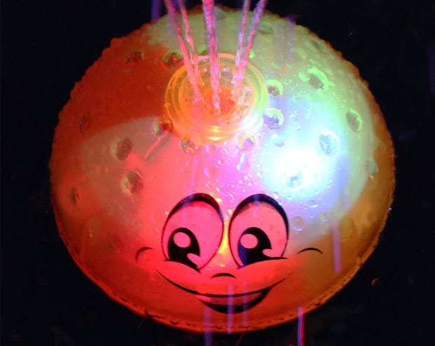 Kula po zanurzeniu w wodzie zostaje automatycznie uruchomiona i tworzy mini fontannę. Pluskającej wodzie towarzyszą kolorowe, zmieniające się światełka. Dodatkową atrakcją są wypustki na kuli imitujące krople wody. Nierówna faktura zachęca dziecko do badania powierzchni zabawki małymi rączkami.  Po skończonej zabawie należy dokładnie osuszyć czujniki kuli.