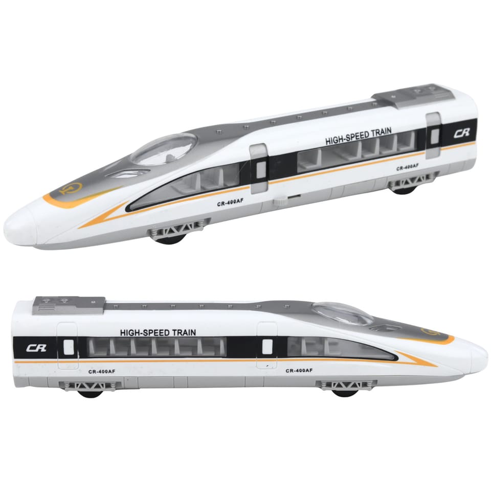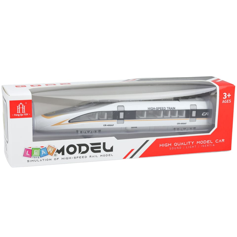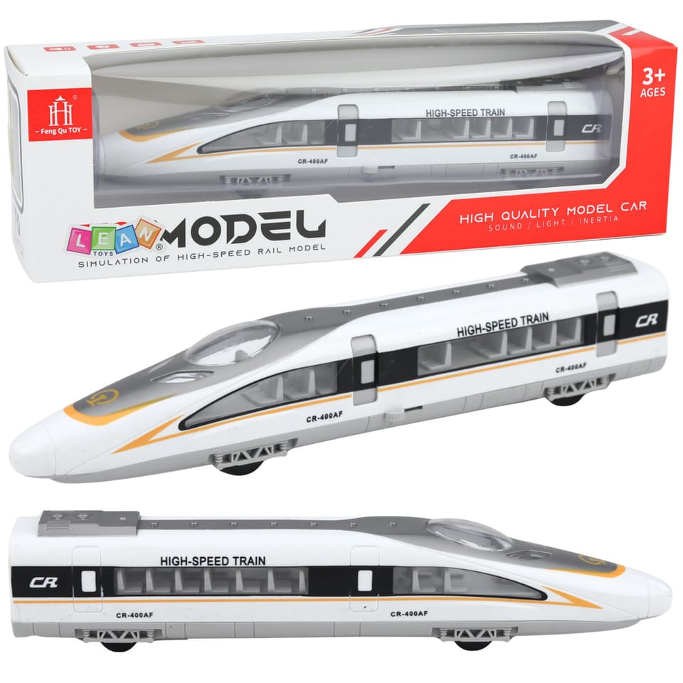 Nowoczesny pociąg pośpieszny High Speed Train to realistycznie wykonany model inspirowany szybkimi składami dalekobieżnymi. Smukła, aerodynamiczna sylwetka oraz dopracowane detale nadają mu dynamiczny i nowoczesny charakter. Jasna kolorystyka z subtelnymi akcentami podkreśla wygląd typowy dla współczesnych pociągów dużych prędkości.
