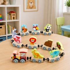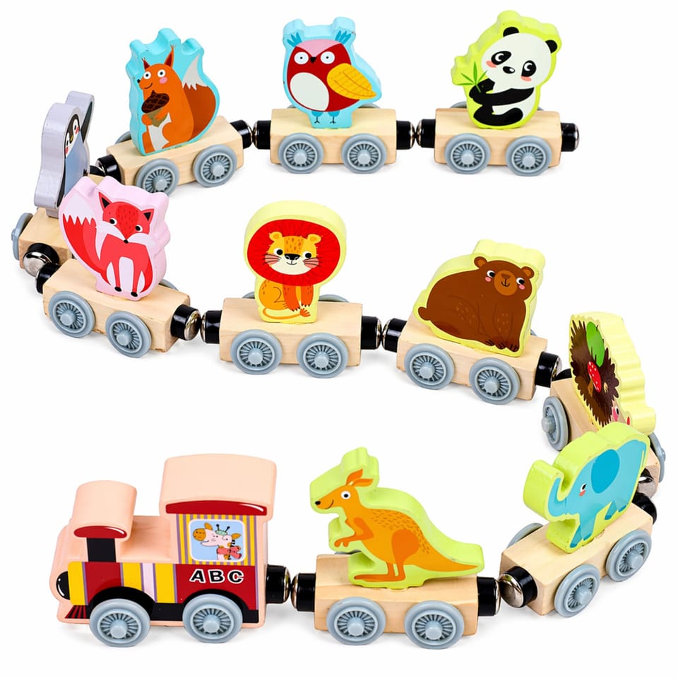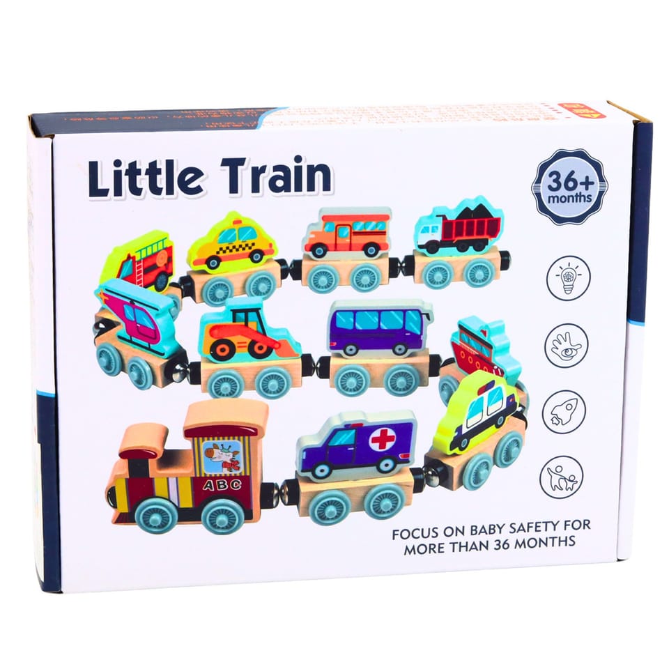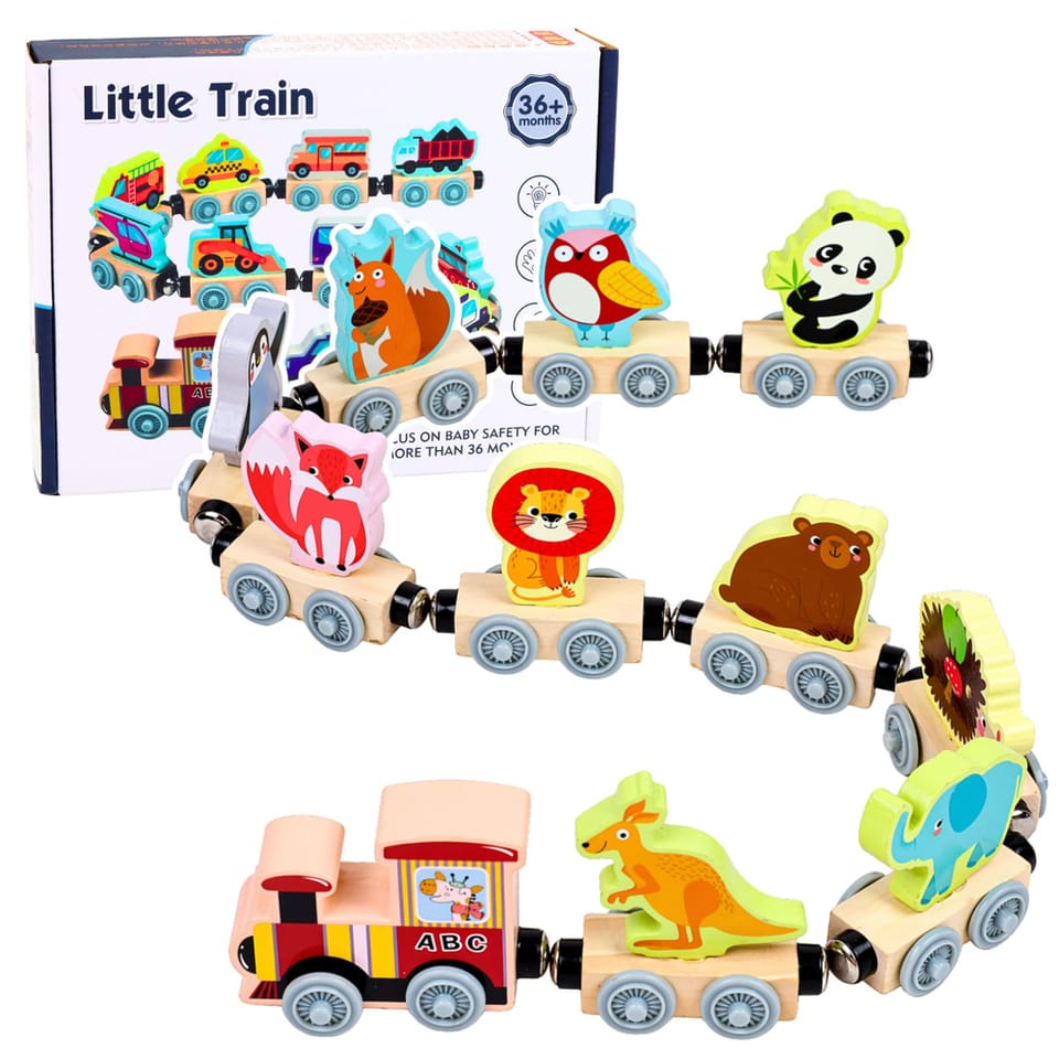 Zabawka składa się z kolorowej lokomotywy oraz różnorodnych wagonów z motywami pojazdów i zwierzątek, które można dowolnie łączyć dzięki magnetycznym łączeniom. Dziecko może swobodnie zestawiać elementy, tworząc własne kompozycje i ucząc się przy tym zależności przestrzennych oraz rozwijając kreatywność.
