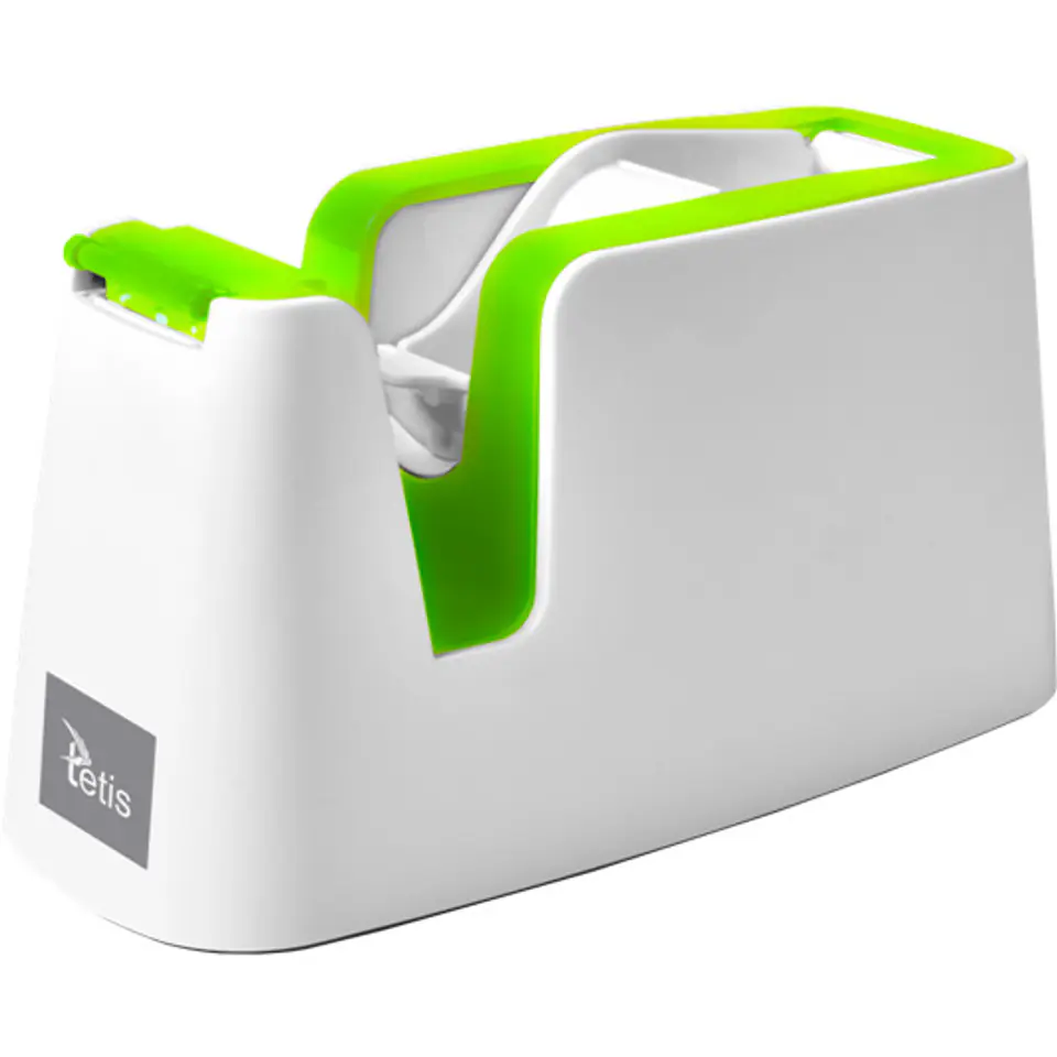 Podajnik marki Tetis zostal wykonany z solidnego i trwalego materialu. Ostry nóz pozwoli Ci bezproblemowo odcinac kazdą taśme o szerokości do 18mm. Antypoślizgowy spód zapewni stabilnośc podczas korzystania z podajnika.