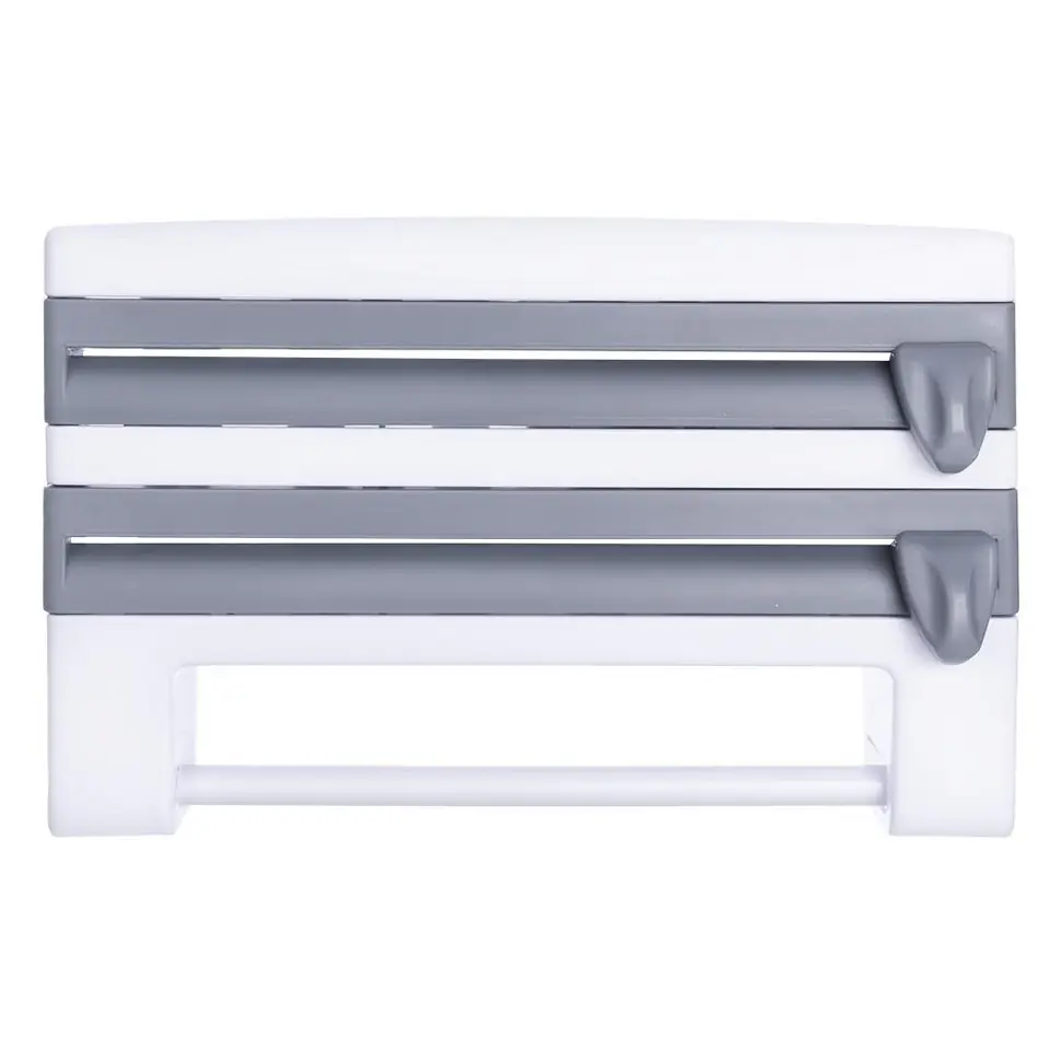 - WYGODNY - Zapewnia szybki dostęp do folii spożywczej, ręczników kuchennych oraz folii aluminiowej. Posiada dwa ostrza do wygodnego obcinania folii.