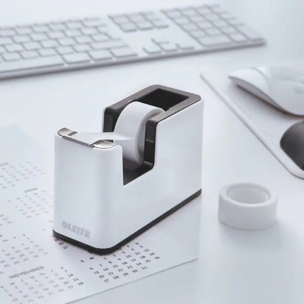 Przykuwający wzrok, wysokiej jakości stylowy podajnik taśmy klejącej, w unikalnym zestawieniu 2 kolorów, wykonczony z polyskiem. Wygodna obsluga jedną reką. Idealnie pasuje do pozostalych produktów z kolekcji Leitz WOW. Nowoczesne wzornictwo sprawia, ze świetnie prezentuje sie zarówno w domu, jak i w biurze.