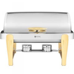 Kod producenta: 10013027Podgrzewacz do potraw marki Royal Catering sprawdzi się do utrzymywania w cieple potraw. Jego pojemność wynosi 9 l. Podgrzewacz wyposażono w wyjmowany pojemnik GN 1/1, który ułatwia jego napełnianie. Przedmiot wykonany został ze stali nierdzewnej, odpornej na zarysowania, higienicznej, spełniającej standardy gastronomiczne. Posiada także uchwyty do przenoszenia. Bemar zasilany jest za pomocą pojemników napełnianych pastą. Palniki posiadają pokrywki ułatwiające zgaszenia płomienia i zapewniają bezpieczeństwo podczas użytkowania. Pojemnik z pastą umieszcza się pod dnem zbiornika na wodę o wymiarach 505 x 303 x 100 mm. Selektywne i oszczędne podgrzewanie cienkościennego pojemnika gwarantuje optymalną dystrybucję ciepła. Dzięki temu potrawy są gotowe spożycia przez wiele godzin. Kąpiel wodna sprawia, ze jedzenie nie przypala się i nie rozgotowuje a także utrzymuje ciepło przez pewien czas nawet po zgaśnięciu płomienia.Cechy produktu: