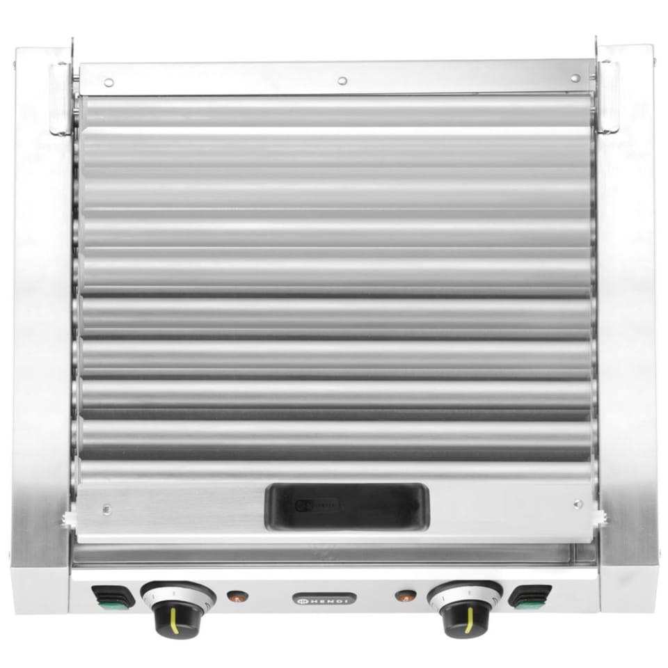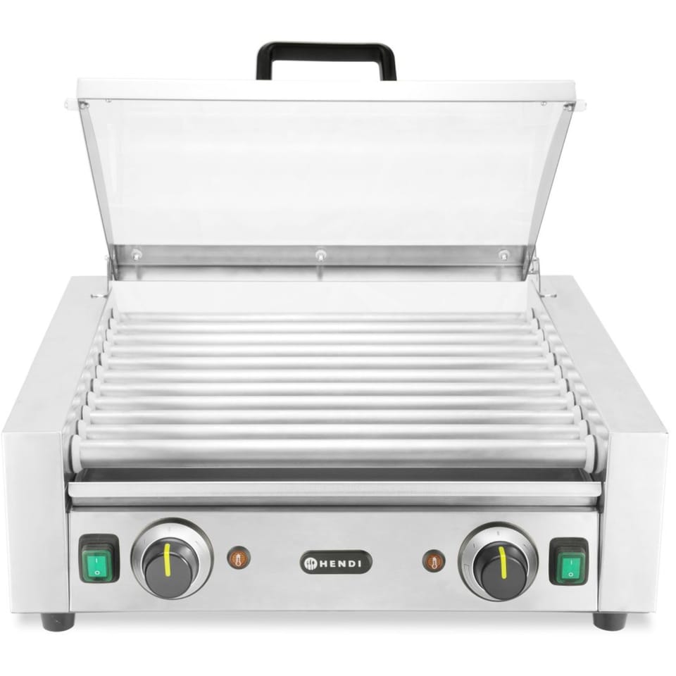 Kod producenta: 1030785Podgrzewacz rolkowy do parówek dwustrefowy HENDI ma obudowę i rolki wykonane z wytrzymałej stali nierdzewnej. Szybko się nagrzewa i utrzymuje stałą temperaturę dzięki szybkiemu odzyskowi ciepła. Podgrzewacz wyposażony jest w pokrywę ze szkła hartowanego, która pomaga utrzymać ciepło i gwarantuje higienę podczas pracy. Dwa niezależnie regulowane pola grzewcze pozwalają jednocześnie przygotowywać różne rodzaje kiełbasek lub innych produktów spożywczych w optymalnych temperaturach. Grill posiada 11 rolek o długości 45 cm, co zapewnia elastyczność podczas intensywnej pracy Wyjmowana tacka ociekowa ułatwia codzienne czyszczenie.Cechy produktu: