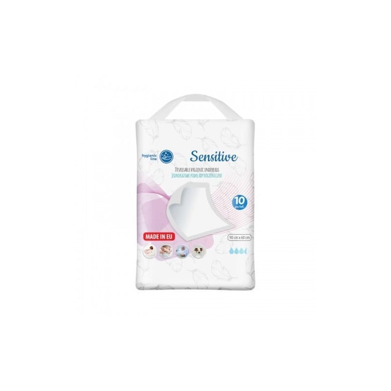 Sensitive to jednorazowy podkład z wysoko chłonnym wkładem. Idealny do zabezpieczenia materaca przed zabrudzeniem. Dzięki zastosowanej nowoczesnej technologii pulpy celulozowej jego wierzchnia warstwa jest bardzo delikatna, miła w dotyku i przyjazna dla skóry dziecka, natomiast folia na spodzie zabezpiecza materac i przewijak przed zamoczeniem. Wysokiej jakości podkład wyprodukowany w UE specjalnie dla najmłodszych dzieci nie powoduje podrażnień skóry podczas przewijania. Można go również stosować przy pielęgnacji osób obłożnie chorych z problemem nietrzymania moczu oraz jako dodatkowa ochrona pościeli szpitalnej. Wykonany z ośmiu warstw dobrze zabezpiecza przed przesiąkaniem. Opakowanie zawiera 10 szt. podkładów. Rozmiar 60 x 90 cm.