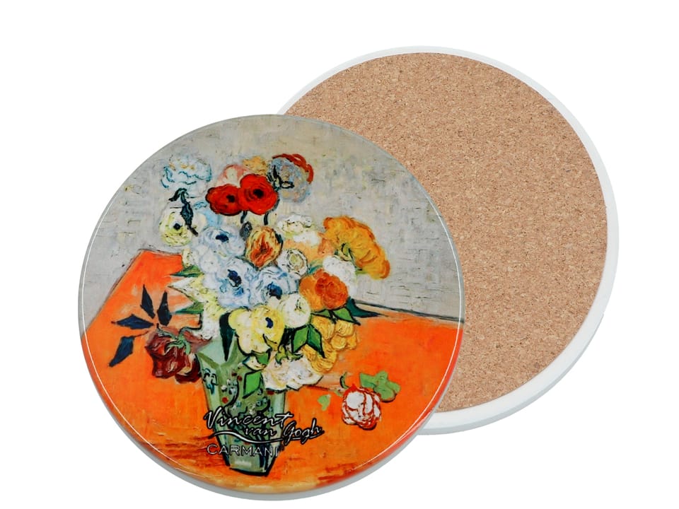 Podkładka ceramiczna, okrągła - V. van Gogh, Róże i zawilce CARMANI