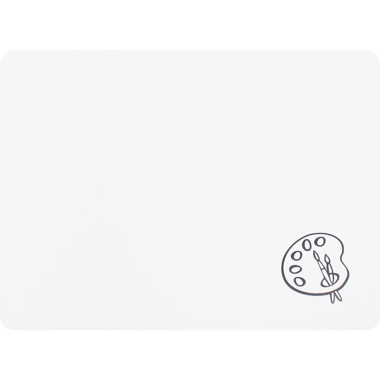 Wykonana z mlecznej folii PP; nadruk palety farb w prawym dolnym rogu; świetnie sprawdza się jako zabezpieczenie biurka podczas prac plastycznych; neutralna kolorystyka pozwala skupić się na wykonywanej pracy; wymiary: 280 x 380 mm;