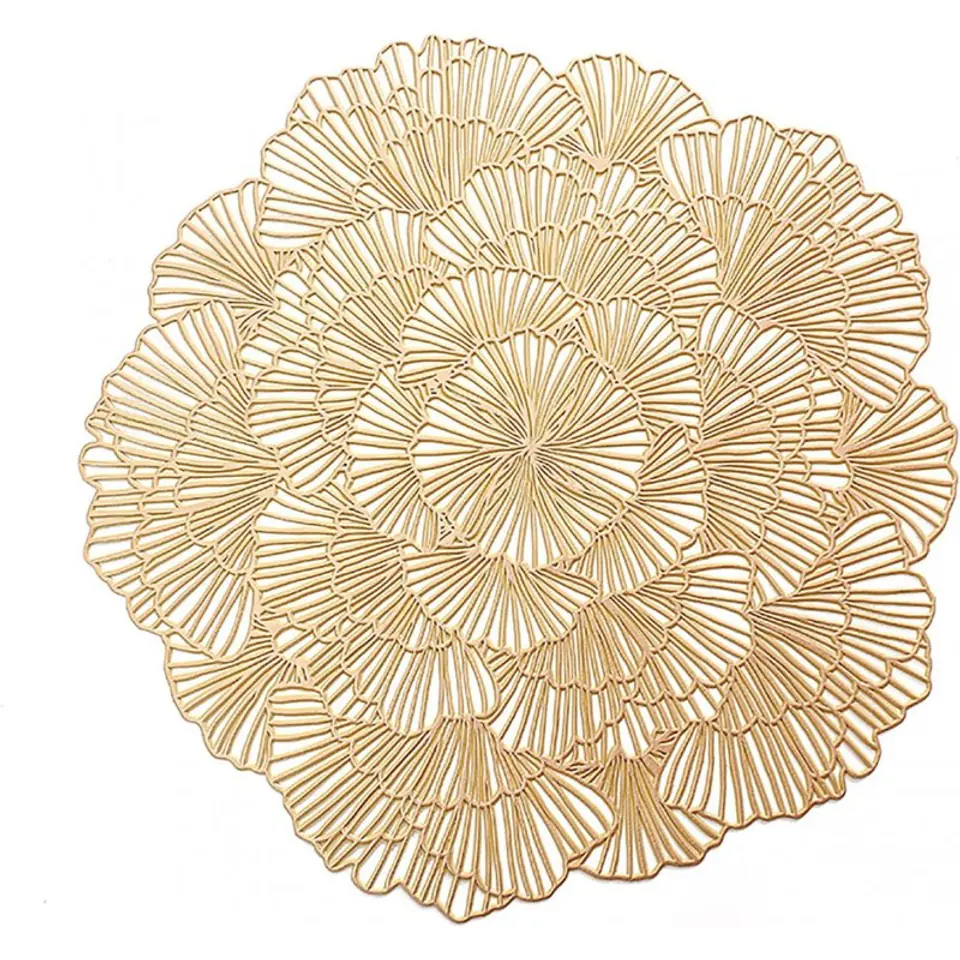 Duża i efektowna podkładka na stół w kolorze złota - Wymiary - średnica 38 cm- Materiał PCV od spodu przykleja się do stołu Waga:100g