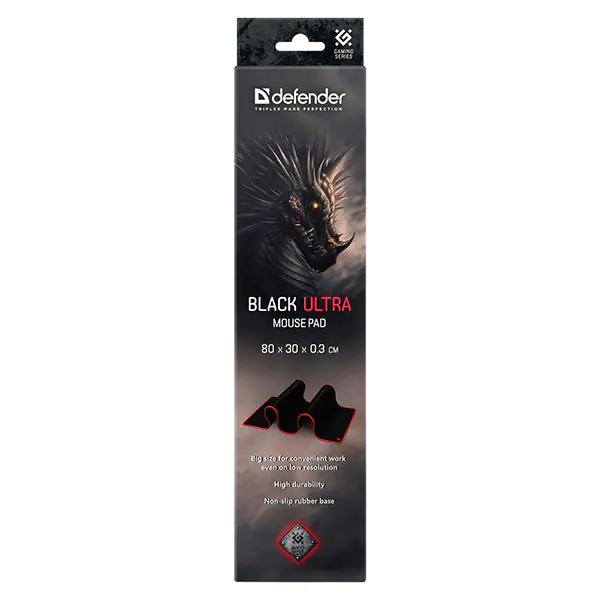 Podkładka pod mysz Defender Black Ultra to idealne rozwiązanie dla graczy i osób pracujących przy komputerze. Jej duży rozmiar (800x300 mm) zapewnia wystarczającą przestrzeń do swobodnego ruchu myszy, a grubość 3 mm oferuje komfort użytkowania. Wykonana z tkaniny poddanej obróbce cieplnej oraz naturalnej gumy, gwarantuje gładkość powierzchni i pewne mocowanie na każdej powierzchni.
