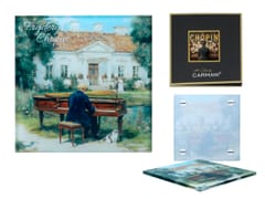 Gustowna, kwadratowa podkładka pod kubek, która wyróżnia się oryginalnym zdobieniem inspirowanym twórczością Fryderyka Chopina.