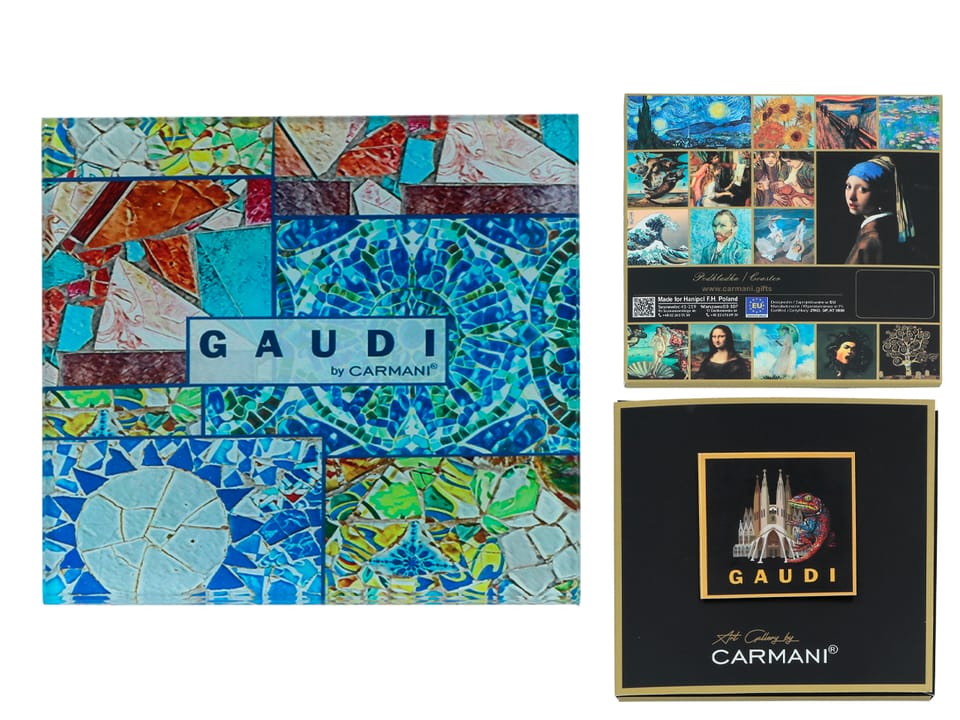 Gustowna, kwadratowa podkładka pod kubek ozdobiona malarstwem hiszpańskiego artysty Gaudiego ożywi stylizację każdego stołu.