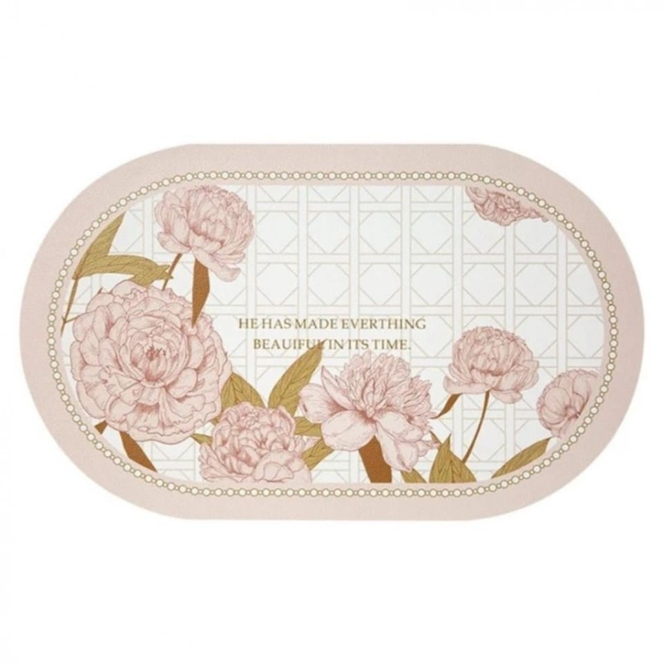 Duża i efektowna pudrowa podkładka na stół Wymiary:30x45 cmGrubość 3 mm Materiał:PCV od spodu gumowana, dzięki czemu przykleja się do stołu. Waga:250 g