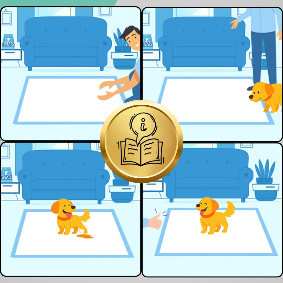 - Gdy Twój pupil wysyła Ci sygnały, że szuka miejsca do załatwienia się, przenieś go szybko i delikatnie na matę.