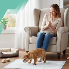 - Gdy Twój pupil wysyła Ci sygnały, że szuka miejsca do załatwienia się, przenieś go szybko i delikatnie na matę.