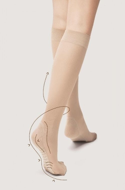 Rewelacyjne podkolanówki marki Fiore z efektem masażu. Od spodu - specjalne strefy. Do tego technologia Silver Fresh (pozwala ograniczyć rozwój nieprzyjemnych zapachów, bakterii czy grzybów) i komfortowy, bezuciskowy ściągacz. Skład: 80% poliamid, 20% elastan. Grubość 20 DEN.