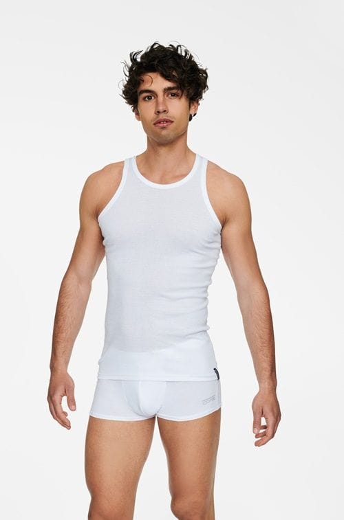 Po prostu Basic - biały podkoszulek męski na szerokich ramiączkach, nr 1480 marki Henderson. Prawdziwa klasyka, o której żaden mężczyzna nie powinien zapomnieć. Dopasowany do ciała, elastyczny, wykonany w technologii "Body Fit". Dobra jakość oraz sprawdzony, sportowy krój. Idealny na upalne dni, dobry jako piżama, homewear czy pod sweter. Uniwersalny i ponadczasowy. Skład: 100% bawełna.