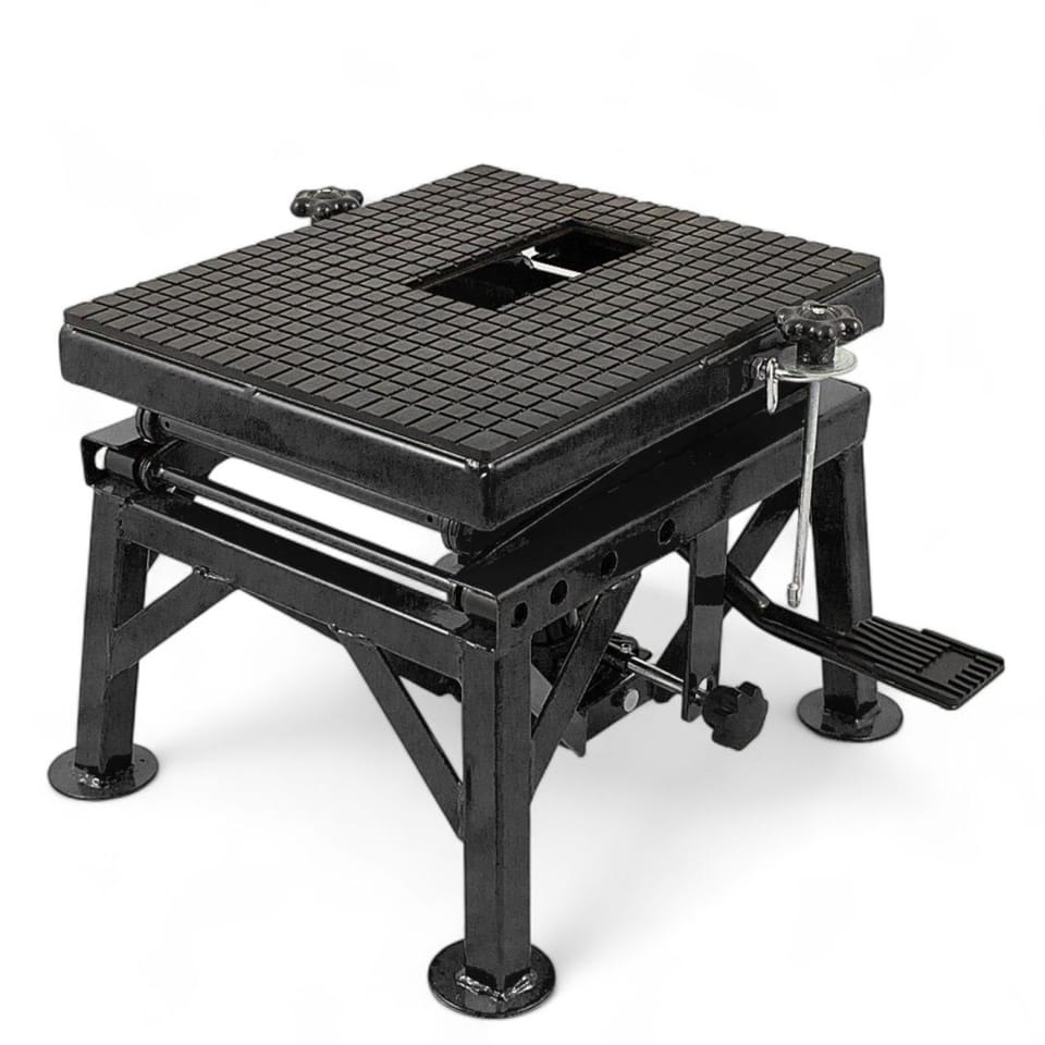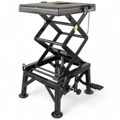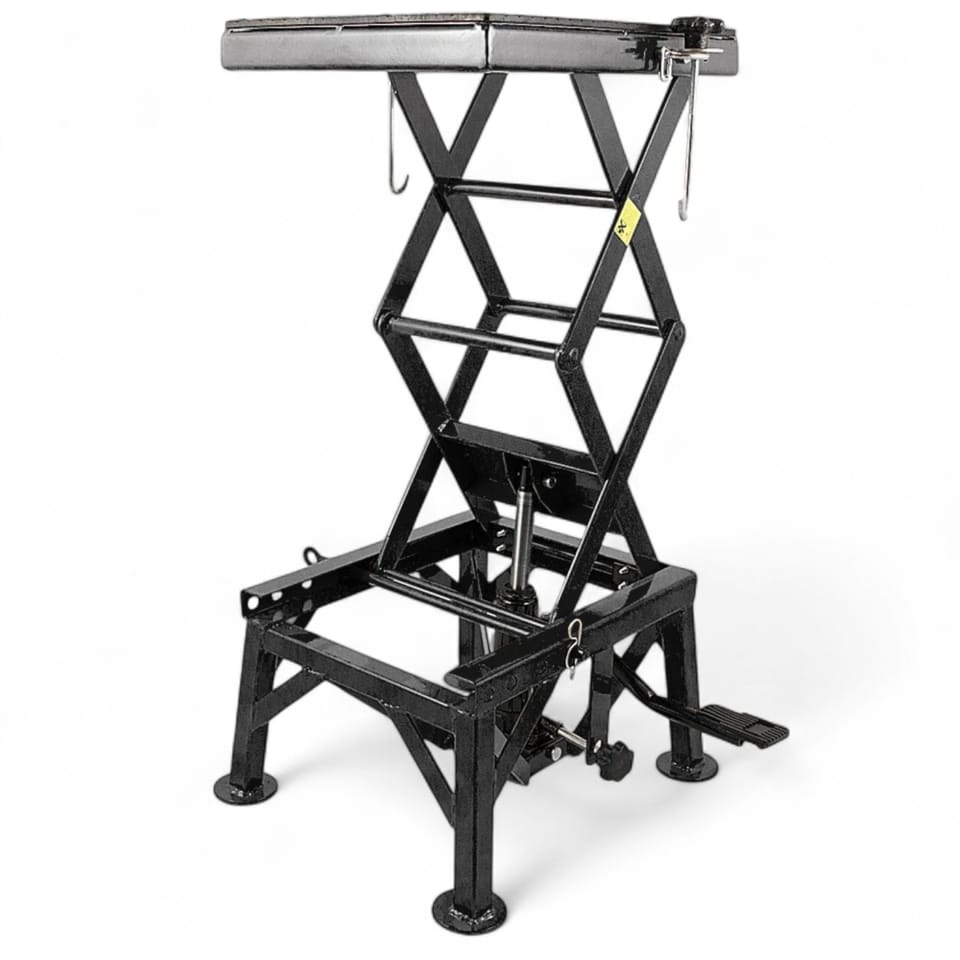 PODNOŚNIK HYDRAULICZNY NOŻYCOWY 135 KGOPIS:Podnośnik nożycowy warsztatowy dla motocykli i quadów. Idealny do serwisowania i napraw. Sprawdzi się w garażu jak i zarówno w profesjonalnym warsztacie. Podnośnik posiada 3 -stopniową regulację wysokości (60 cm, 75cm i 87 cm), pedał umożliwia zablokowanie na pożądanej wysokości. Platforma wyściełana jest gumą co zapewnia stabilną pozycję podnoszonego przedmiotu.WŁAŚCIWOŚCI:✓ udźwig do 135 kg✓ 3-stopniowa regulacja✓ Minimalna wysokości 35cm✓ Maksymalna wysokości 87cmZESTAW ZAWIERA:✓ 1 x podnośnik hydrauliczny ✓ 1 x InstrukcjaDANE TECHNICZNE:Wymiary: (Długość / Szerokość / Wysokość) 42 x 42 x 35, 60, 75, 87cmWymiary włazu: 7,5 x 18cm (Długość / Szerokość)Ładowność: 135 kilogramówMateriał: StalKolor: czarnyWaga: 28 kgWymiary paczki: 49 x 44 x 37 cm