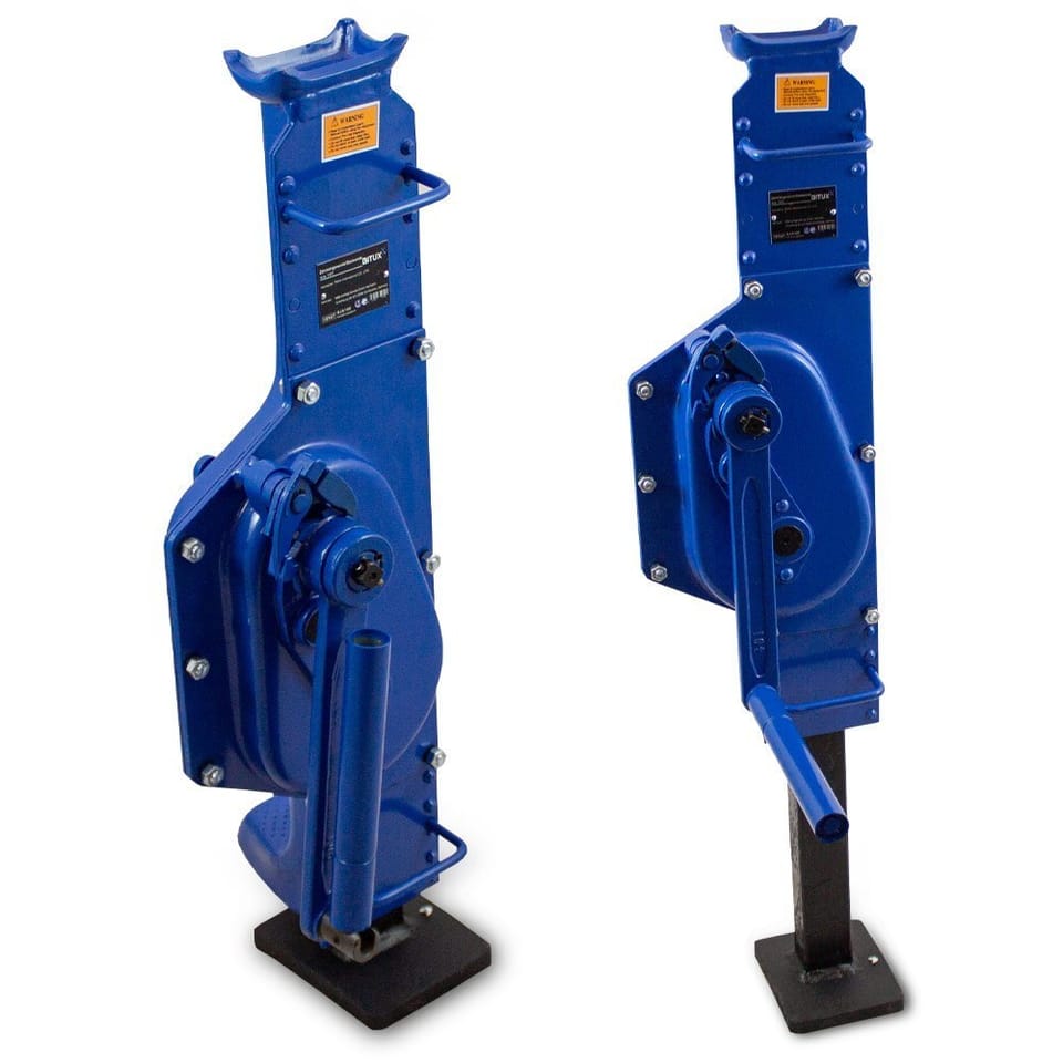 Bezpieczny podnośnik klasy przemysłowej. Podnośnik posiada stabilną podstawę, przenosi duże obciążenia - aż do 10 ton, posiada zamontowaną podwójną zapadkę i składaną korbę. Niezbędny w warsztatach, halach warsztatowych i produkcyjnych.