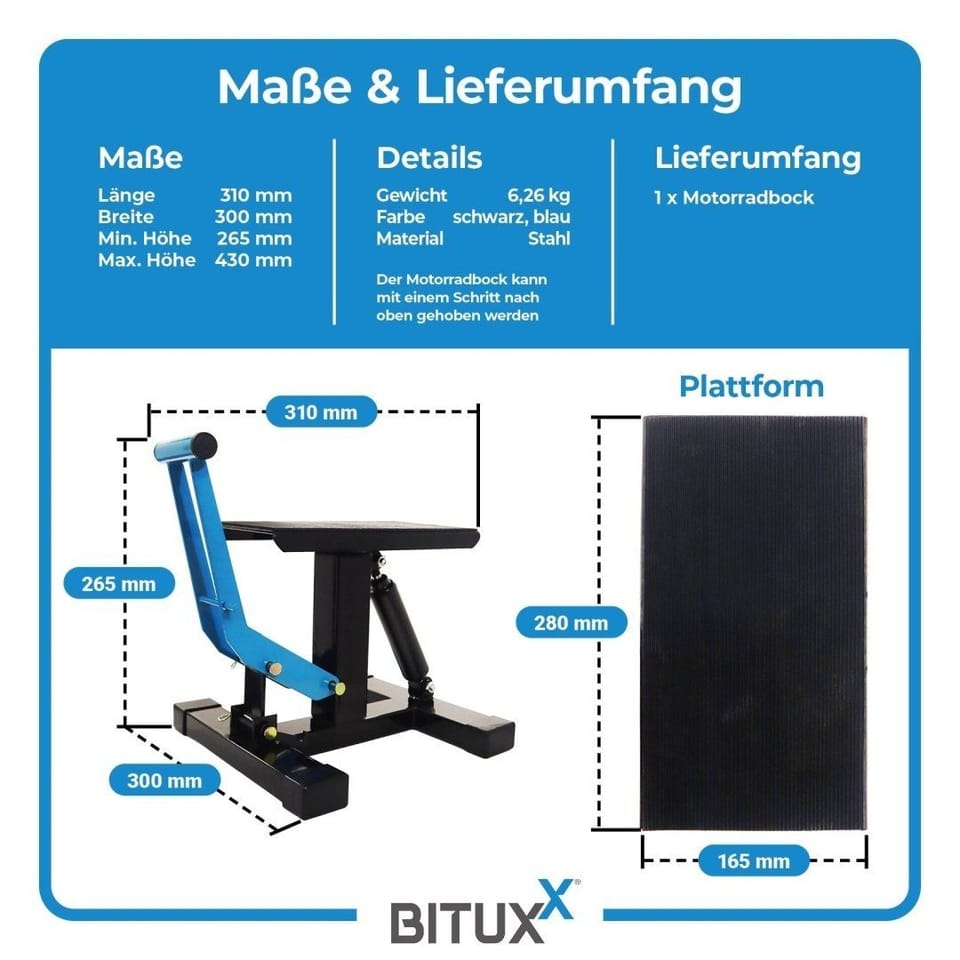 Podnośnik motocyklowy BITUXX 150 kg - stabilny, bezpieczny, łatwy w obsłudze