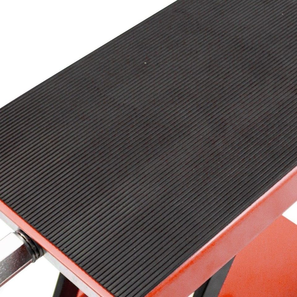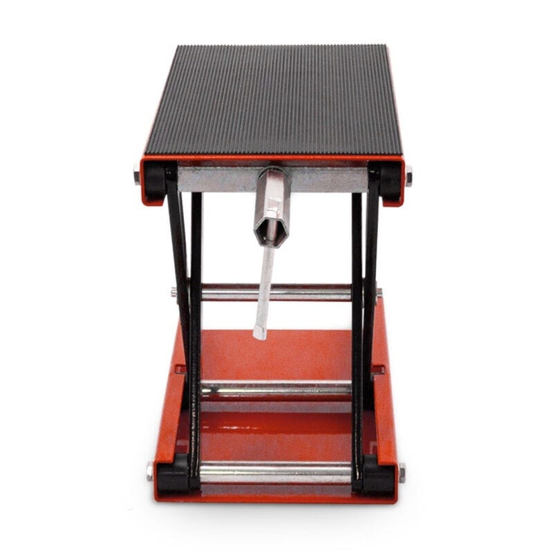 Dzięki solidnej konstrukcji i łatwej obsłudze, motocyklowy podnośnik nożycowy nadaje się do bezpiecznych i wygodnych prac serwisowych i naprawczych przedniej i tylnej osi w domowym hobby lub profesjonalnym warsztacie. Platformę podnoszącą można przymocować do ramy, silnika lub wahacza.