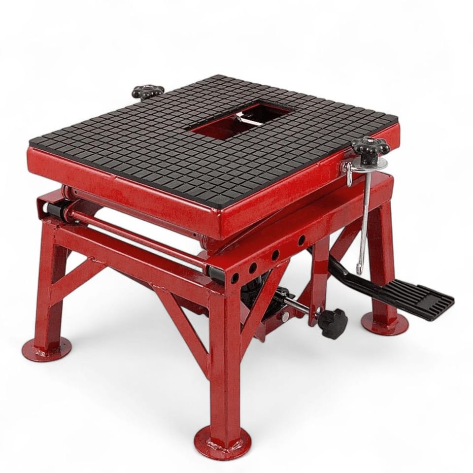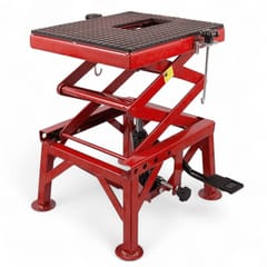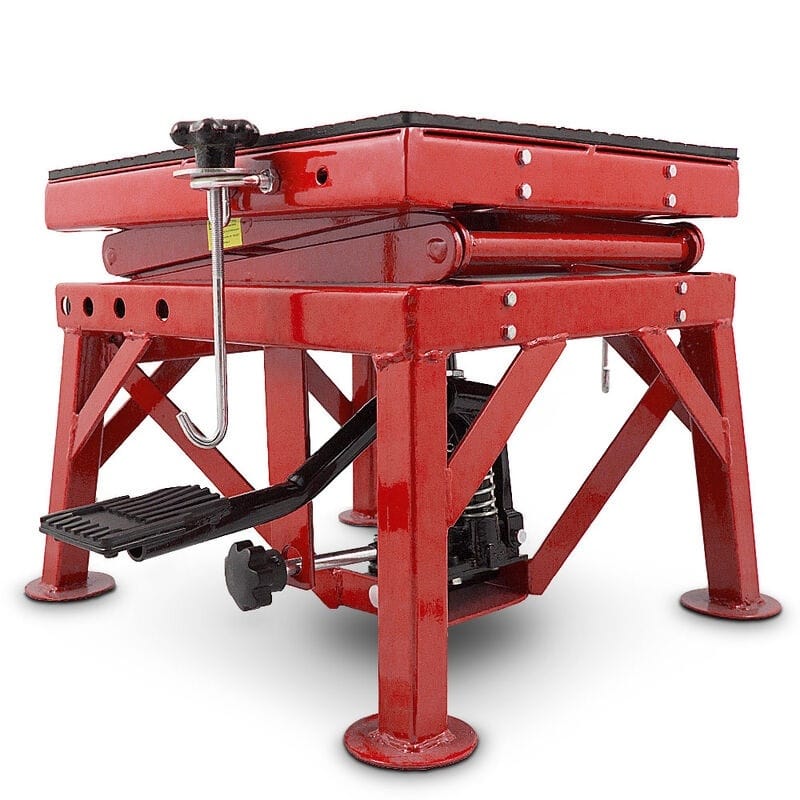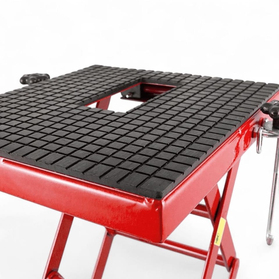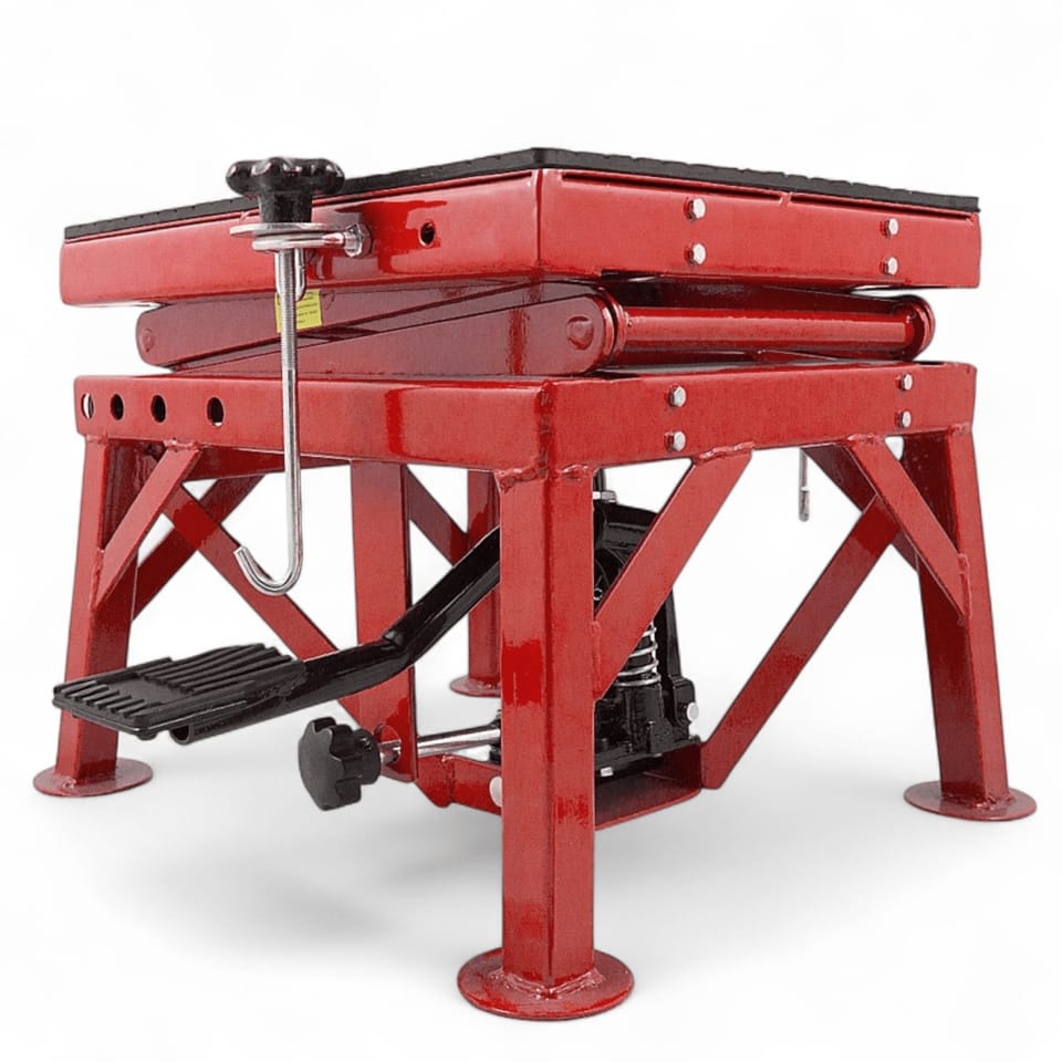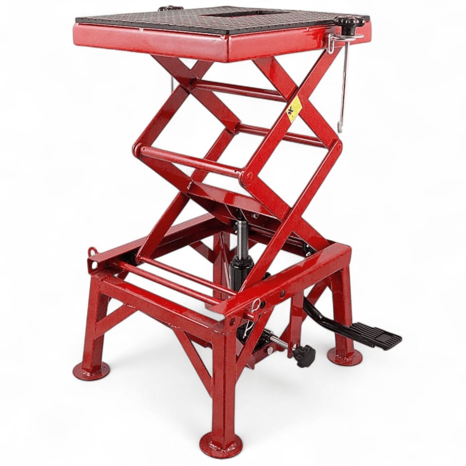 Podnośnik nożycowy warsztatowy dla motocykli i quadów. Idealny do serwisowania i napraw. Sprawdzi się w garażu jak i zarówno w profesjonalnym warsztacie. Podnośnik posiada 3 -stopniową regulację wysokości (60 cm, 75cm i 87 cm), pedał umożliwia zablokowanie na pożądanej wysokości. Platforma podnosząca pokryta jest gumą co zapewnia stabilną pozycję podnoszonego przedmiotu.