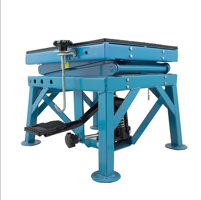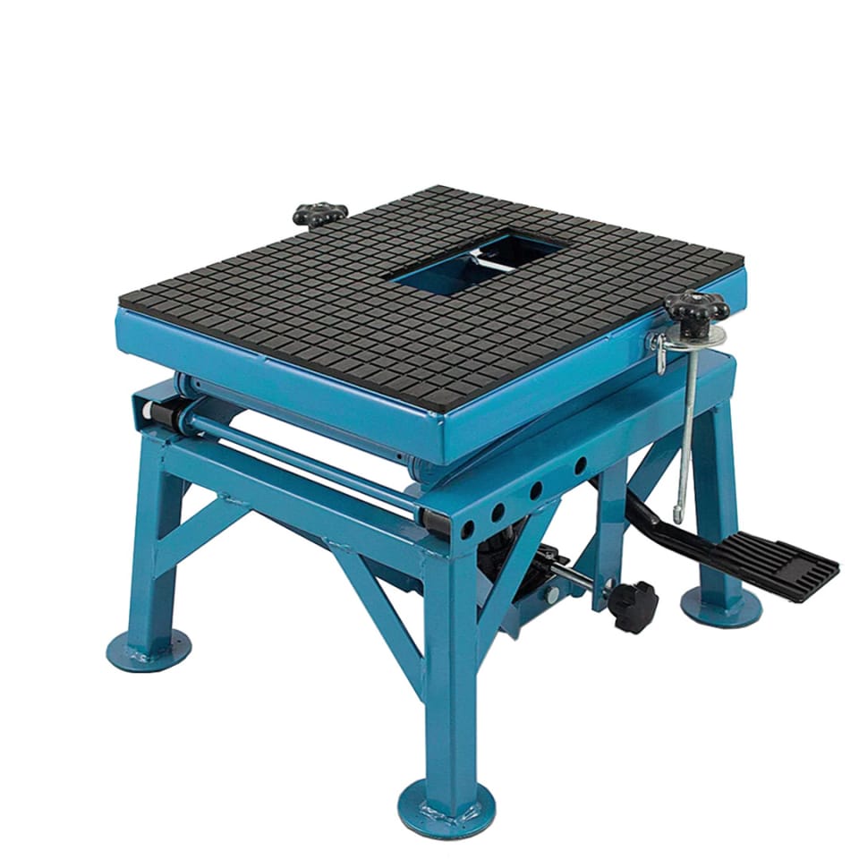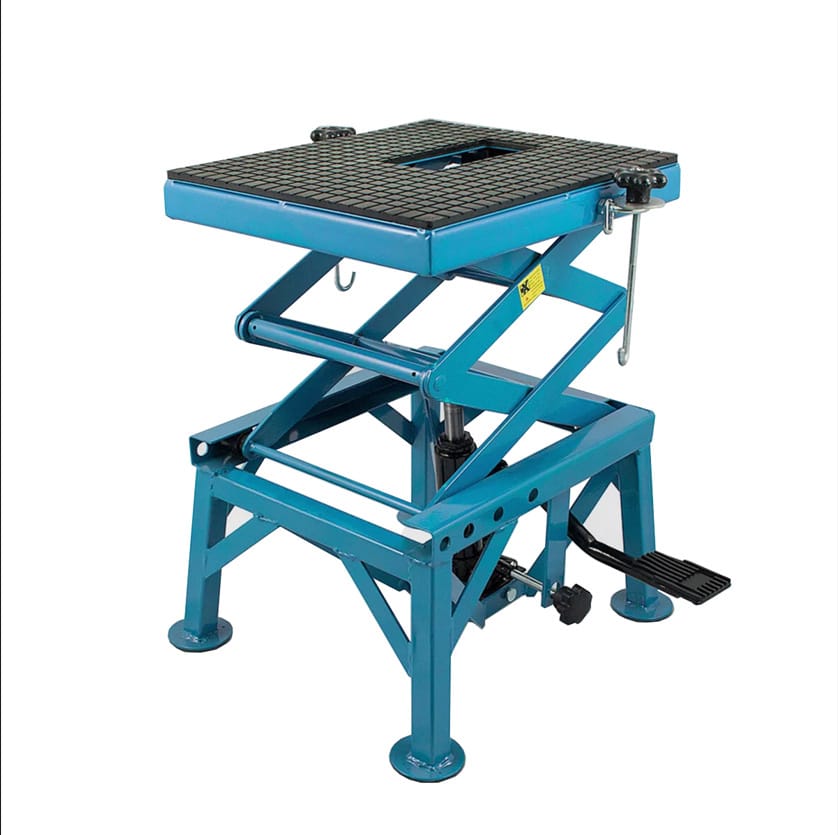 Podnośnik nożycowy warsztatowy dla motocykli i quadów. Idealny do serwisowania i napraw. Sprawdzi się w garażu jak i zarówno w profesjonalnym warsztacie. Podnośnik posiada 3 -stopniową regulację wysokości (60 cm, 75cm i 87 cm), pedał umożliwia zablokowanie na pożądanej wysokości. Platforma podnosząca pokryta jest gumą co zapewnia stabilną pozycję podnoszonego przedmiotu.Cechy Produktu: